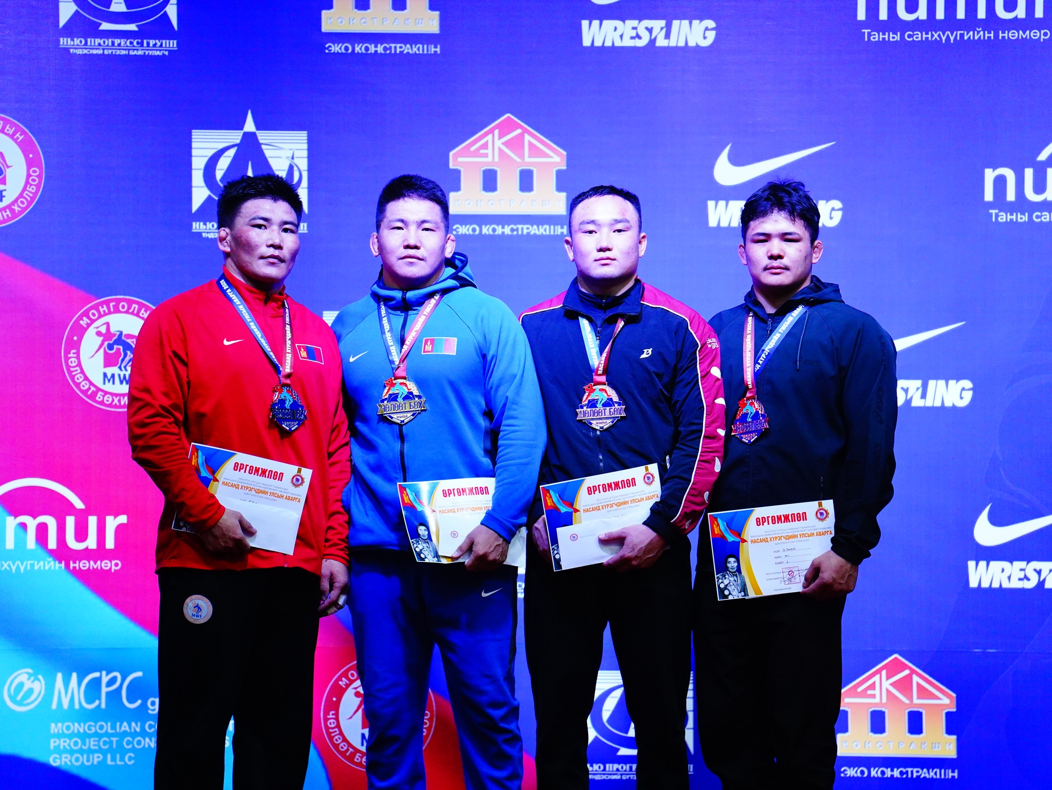 Харин Э.Одгэрэлийн хувьд, улсын аваргын хошой мөнгөн медальтан боллоо. Тэрбээр өнгөрсөн жил 65 кг-ын жинд үзүүрлэж байсан. Өнгөрсөн оны УАШТ-ий энэ жингийн үзүүр бөх Д.Цогзолмаа хүрэл медаль гардан авлаа.