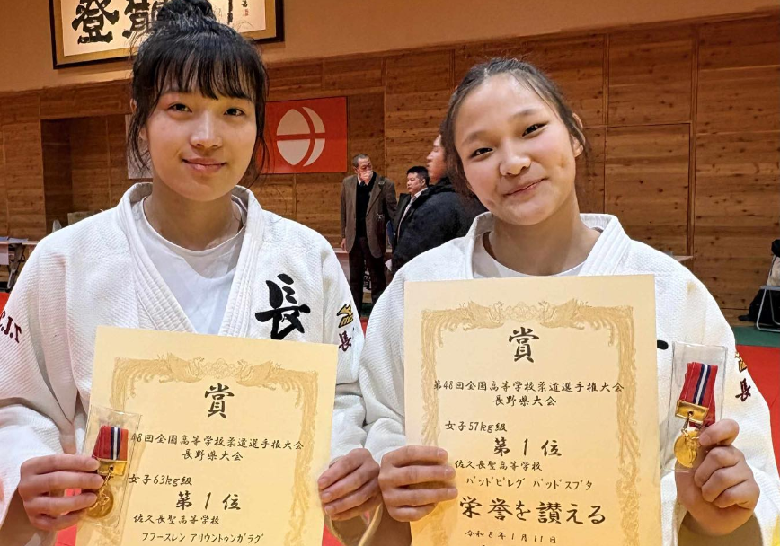 “Монголын жүдо академи”-ийн тамирчин охид Японы тэмцээнээс медаль хүртжээ. Япон Улсын Нагано мужийн 48 дахь удаагийн аварга шалгаруулах тэмцээний эмэгтэйчүүдийн 57 кг-ын жинд Б.Батсувд, 63 кг-ын жинд Х.Ариунтунгалаг алтан медаль тус тус хүртсэн байна.
