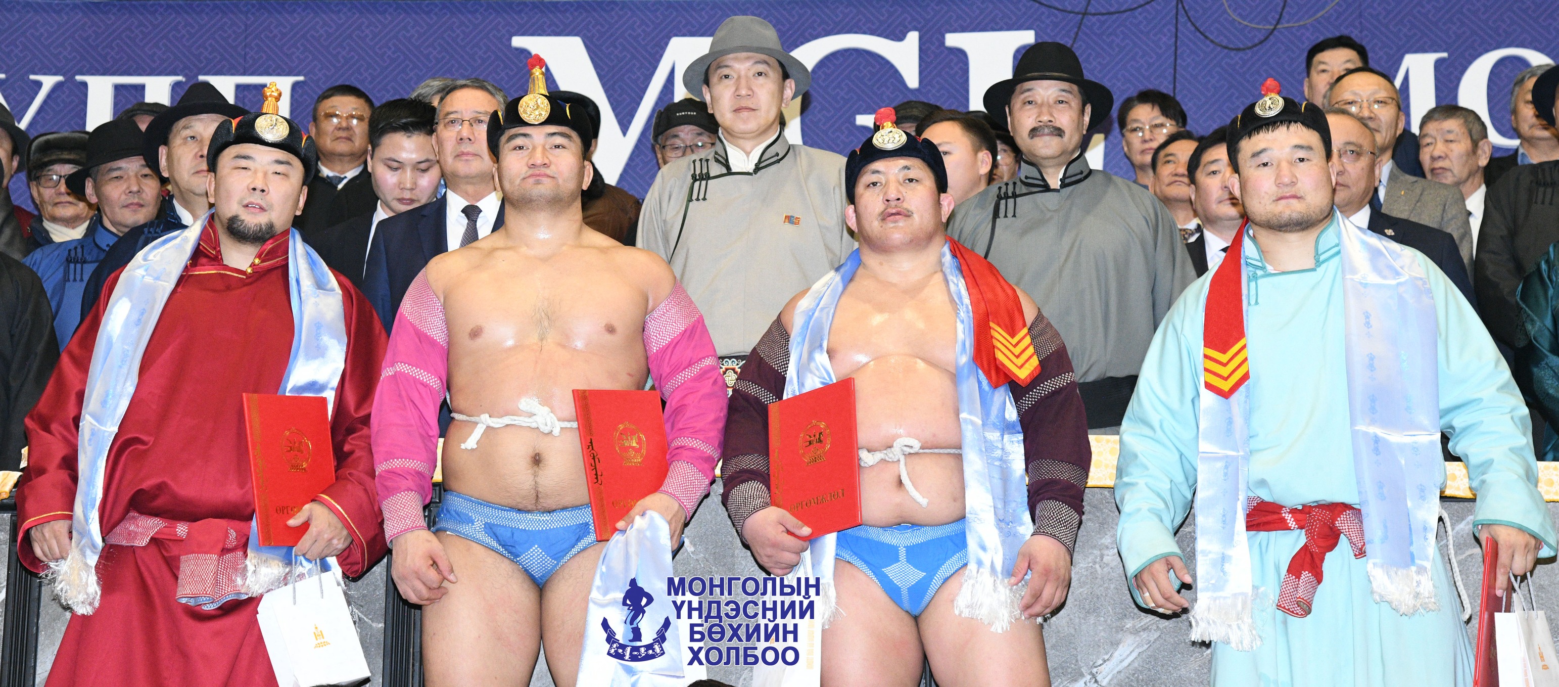 Шинэ үндсэн хууль батлагдсаны 34 жилийн ойд зориулсан улс, аймаг, цэрэг, сумын цолтой чансаа өндөр 128 бөхийн барилдаанд Өвөрхангай аймгийн Төгрөг сумын харьяат, “Нутгийн Буян” групп, Барилга инженерийн цэргийн удирдах газар, "Их Монголын Хүчтэн" дэвжээний бөх, улсын арслан Цэдэнсондномын Бямба-Отгон түрүүллээ. Ховд аймгийн Зэрэг сумын харьяат, "Аврагч" спорт хороо, “Монтед Констракшн”, зэвсэгт хүчний 034 анги, “Асиан Сити” ХХК, “Батхаан Ойл” ХХК, "Ховд" дэвжээний бөх, улсын заан Баярхүүгийн Бат-Өлзий үзүүрлэв.