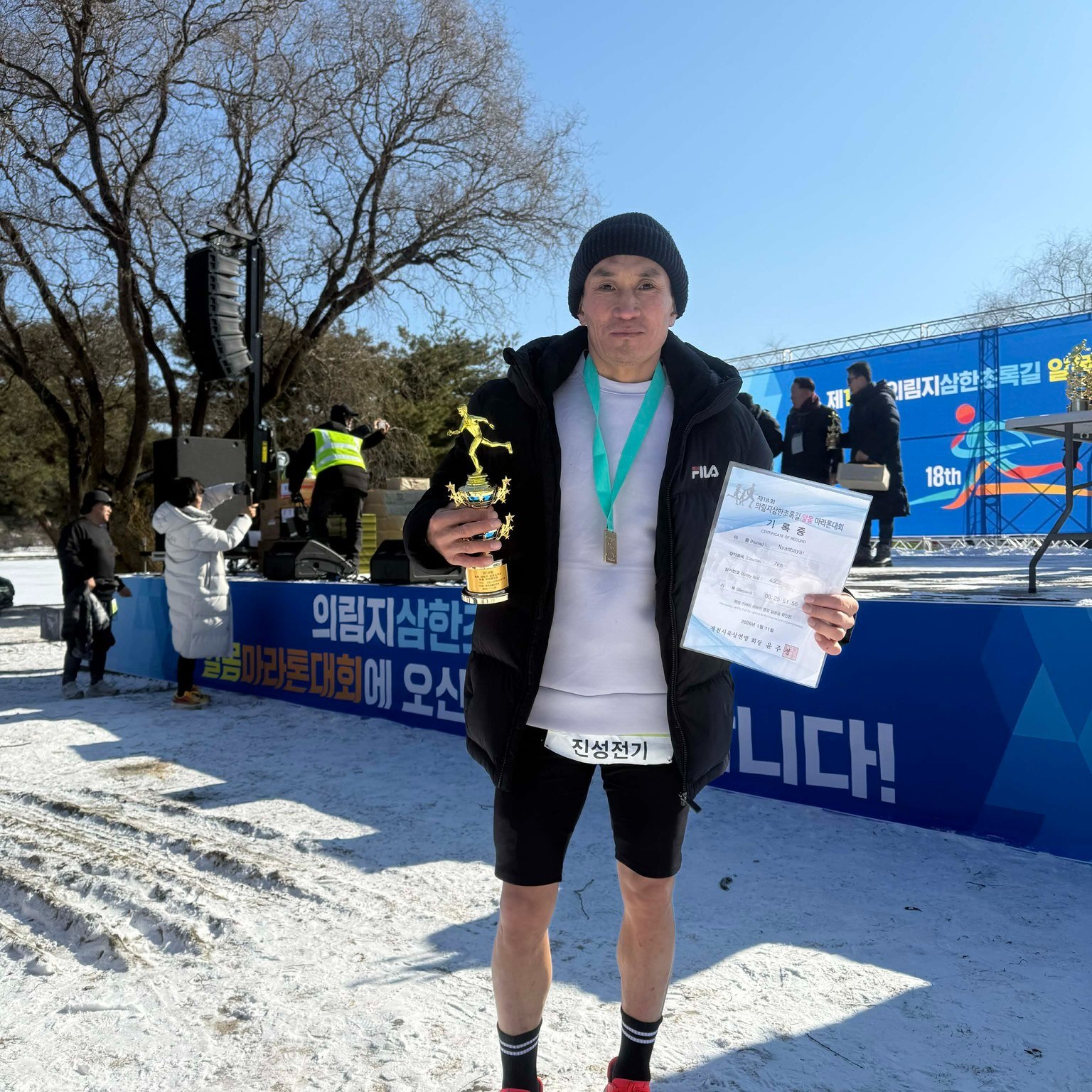 Өмнөд Солонгосын Жэчон хотын Хөнгөн атлетикийн холбооны нэрэмжит 18 дахь удаагийн “Үйримжи Самхан” цээж нүцгэн гүйлтийн тэмцээн энэ сарын 11-ний өдөр боллоо. Тус тэмцээний 7 км-ийн гүйлтэд 800 гаруй хүн оролцсон байна. “Mongolian Elite Runners” клубийн тамирчин, Ховд аймгийн Булган сумын уугуул, хэт холын марафон гүйлтийн спортын дэд мастер Н.Нямбаяр 25:51’56 цагийн амжилтаар нийт оролцогчдоос V байр, насны ангилалдаа тэргүүн байр эзэллээ.