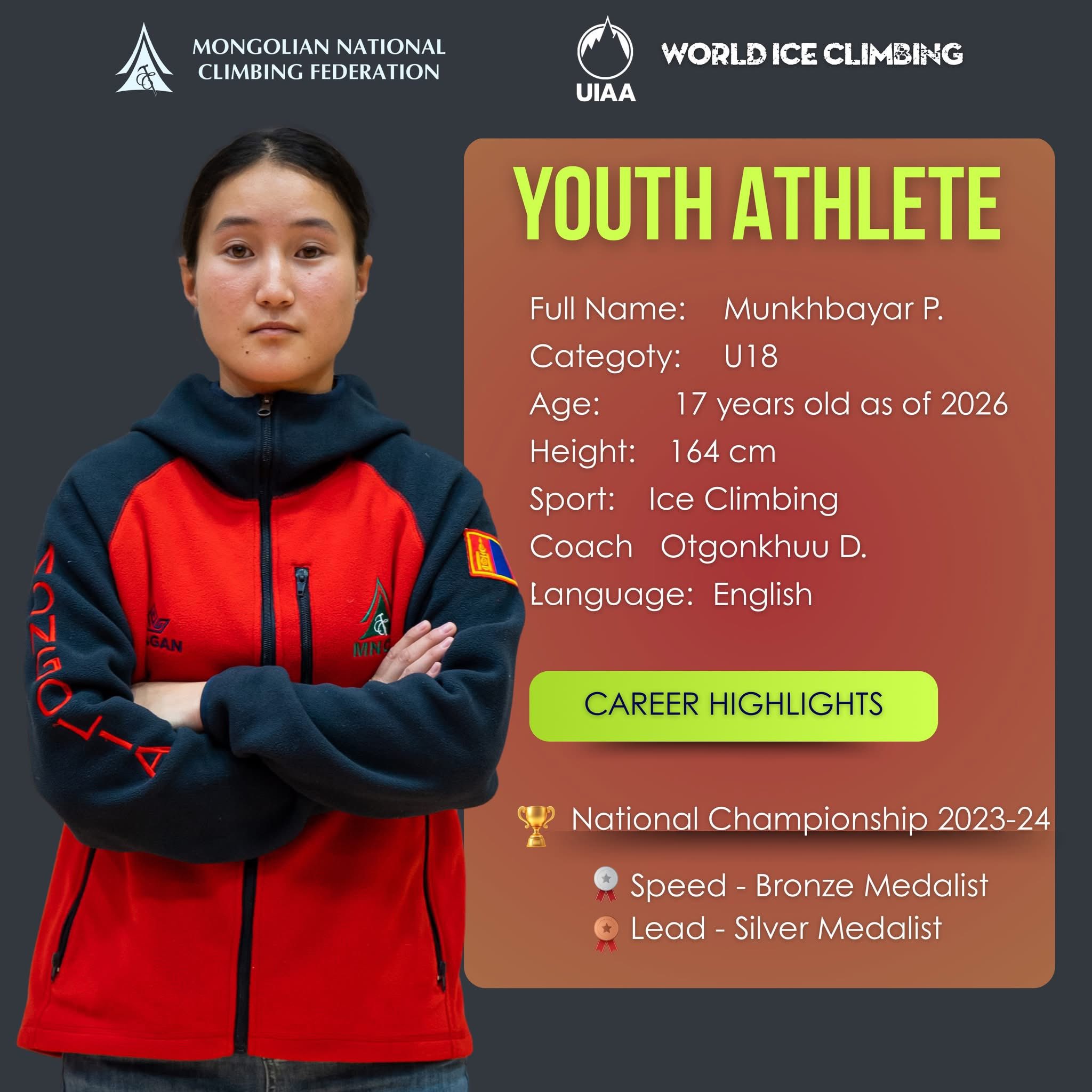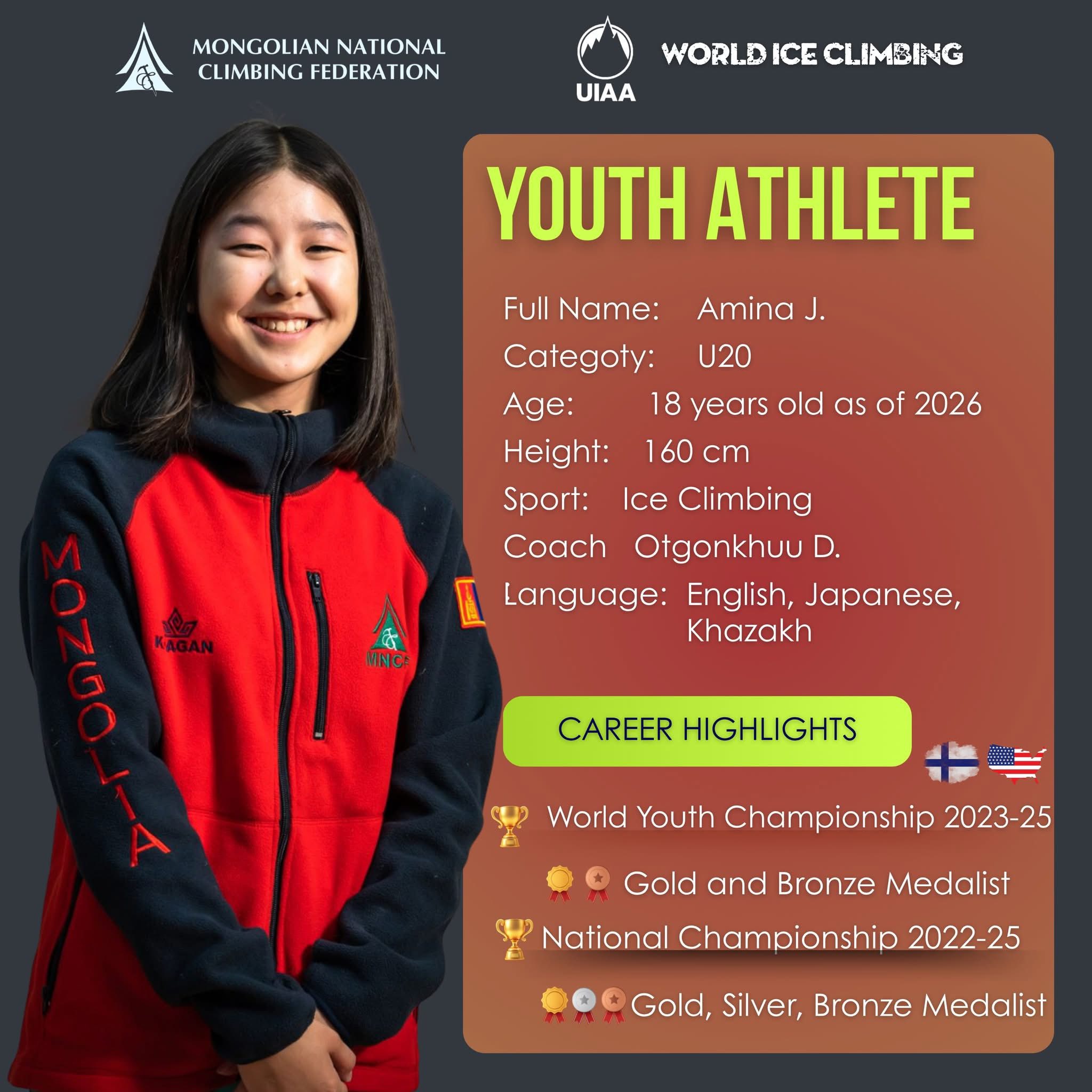 Лихтенштейн Улсын Мальбун хотод мөсөнд авиралтын залуучуудын 2026 оны ДАШТ нэгдүгээр сарын 29-31-ний зохион байгуулагдаж байна. “UIAA”-гийн мөсөнд авиралтын залуучуудын ДАШТ-ний “U20” ангиллын хурдны төрөлд өрсөлдсөн Ж.Амина медаль хүртлээ.