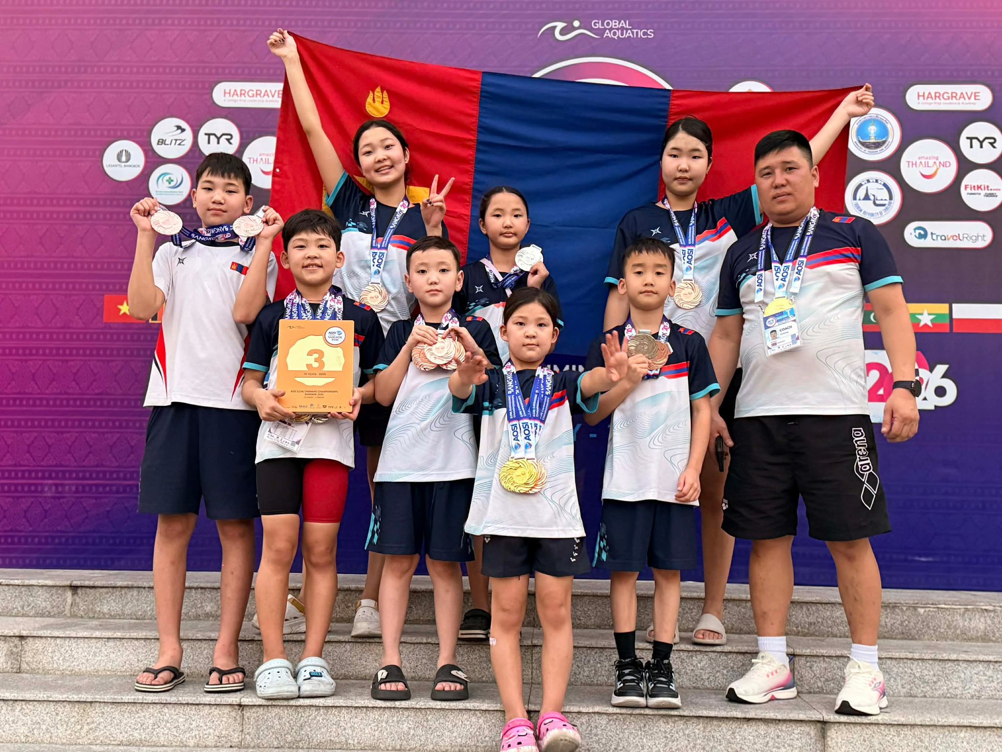 Тайланд Улсын нийслэл Бангкок хотод олон улсын өсвөрийн усанд сэлэлтийн аварга шалгаруулах тэмцээн зохион байгуулагдсан байна. Тус тэмцээнээс Монголын тамирчид 60 медаль хүртжээ. Манай улсын “We aquatics” клубийн тамирчин 11 настай Б.Маргад хувийн амжилтаа ахиулаад зогсохгүй өөрийн оролцсон ганцаарчилсан төрлүүддээ нэг алт, нэг мөнгө, хоёр хүрэл, багийн буухиа төрөлд хоёр мөнгө, хоёр хүрэл медаль хүртсэн байна.