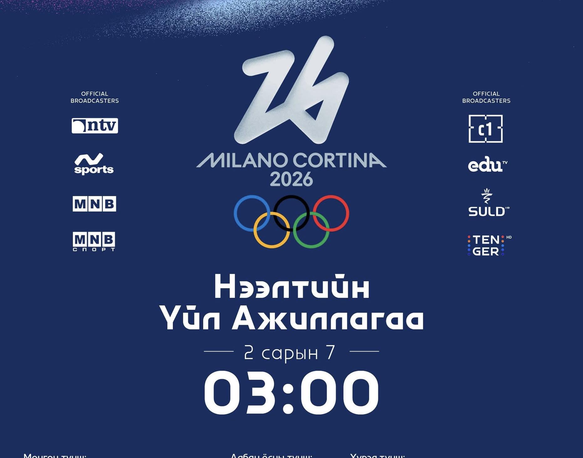 | “МИЛАН-КОРТИНА-2026” өвлийн олимпын нээлт үүр, шөнийн 03:00 цагт эхэлнэ |