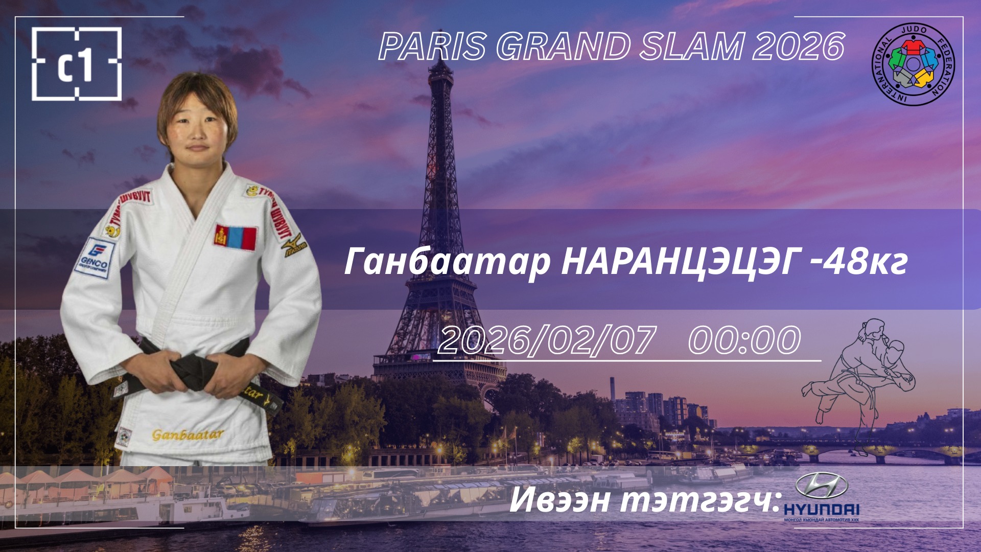 Франц Улсын Парис хотод хоёрдугаар сарын 7-8-ны өдрүүдэд “Бага дэлхийн аварга” гэж нэрлэдэг “Парис-2026 Гранд слам”-д тэмцээн үргэлжилнэ. Тус “Гранд слам”-ын эмэгтэйчүүдийн 63 кг-ын жинд МУГТ Л.Энхрийлэн алтан медалийн төлөө, 48 кг-ын жинд ОУХМ Г.Наранцэцэг хүрэл медалийн төлөө барилдахаар шалгарч үлдлээ.
