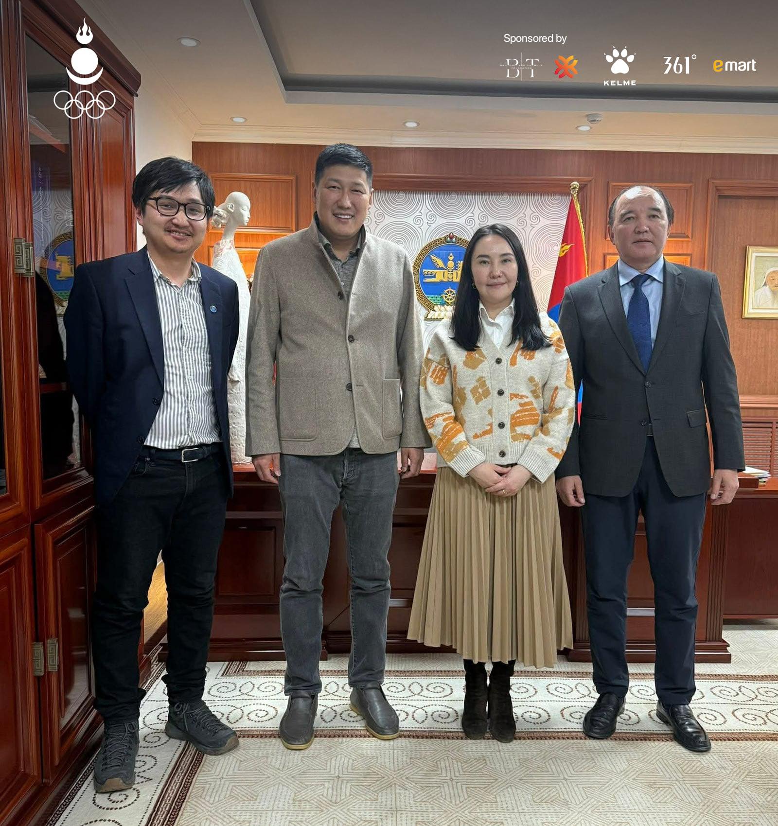 Уг уулзалтад ССАЖЗ-ын Спортын бодлогын газрын дарга Д.Жаргалсайхан, Спортын анагаах ухаан, эрдэм шинжилгээний төвийн дарга Б.Эрдэнэваанчиг, БТСУХ-ны Үндэсний шигшээ багийн Бодлого хэрэгжилтийн ахлах мэргэжилтэн Ш.Баясгалан, МҮОХ-ны гадаад харилцааны албаны дарга Б. Баяртуяа, Ерөнхийлөгчийн зөвлөх А. Ундрал нар байлцав.