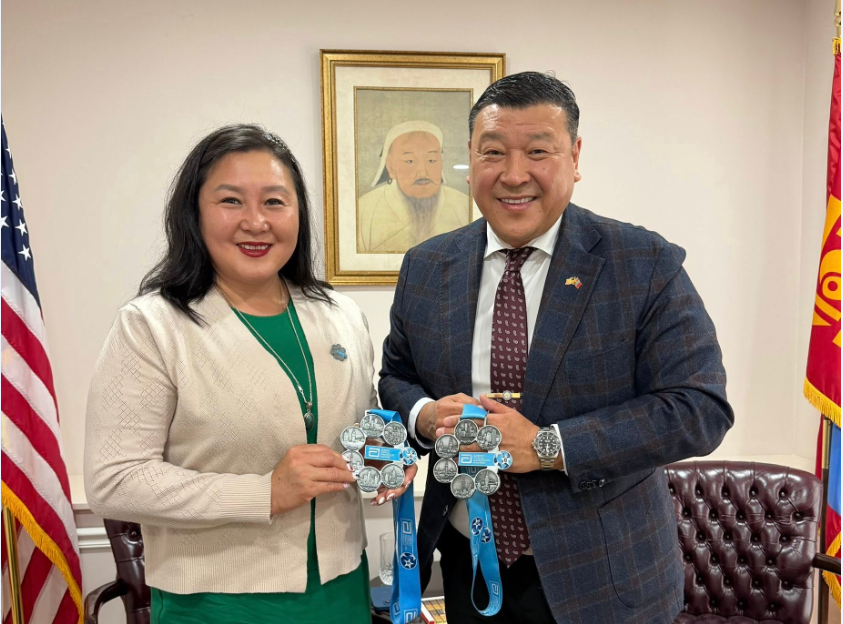 Монгол Улсаас АНУ-д суугаа Элчин сайд Ө.Батбаяр дэлхийн нэр хүндтэй зургаан марафон болох Бостон, Берлин, Лондон, Чикаго, Нью-Йорк, Токио марафонд амжилттай оролцож хос “6- Одот” медаль хүртсэн анхны Монгол марафонч Х.Алимааг хүлээн авч уулзан баяр хүргэв.
