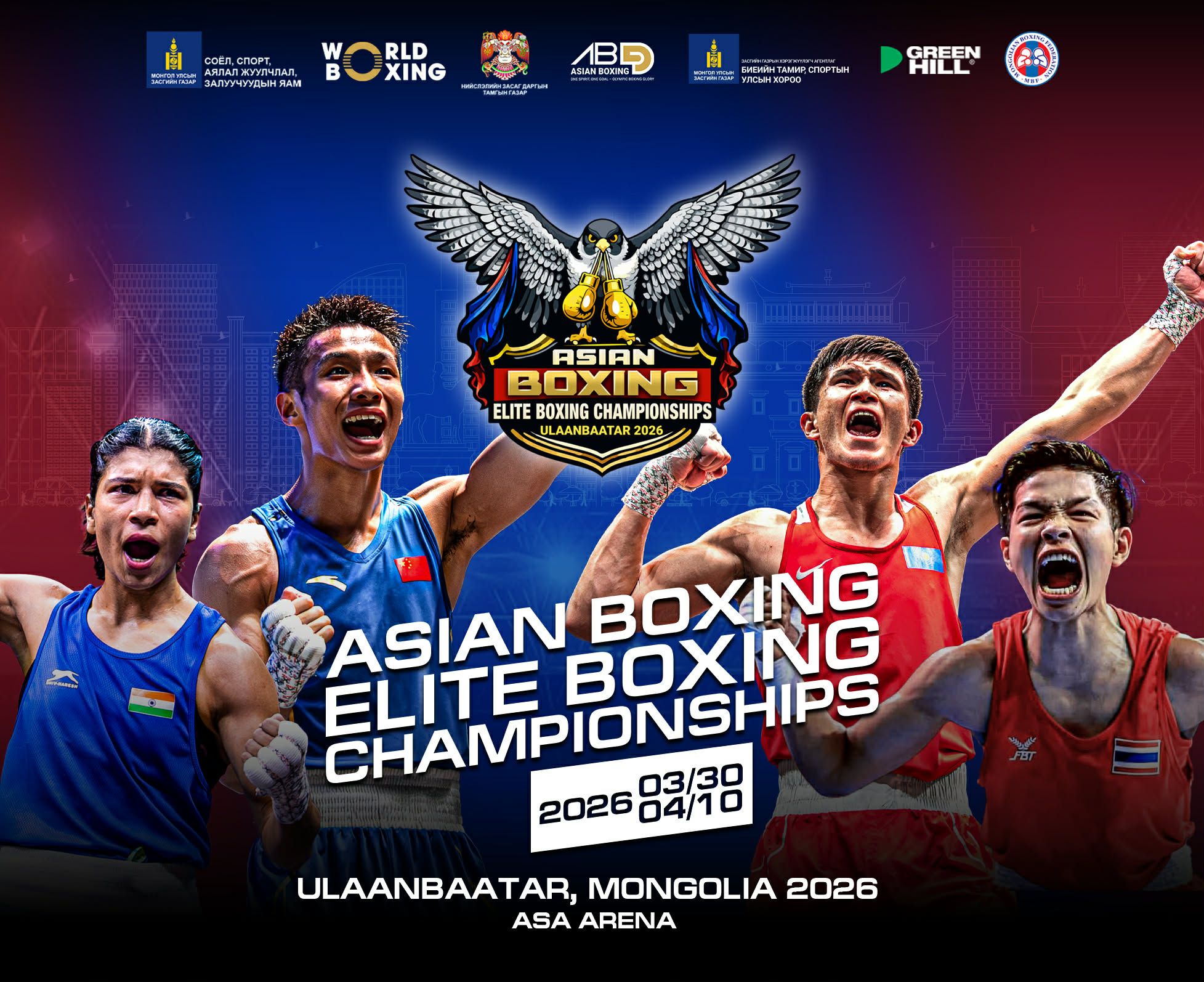 Боксын насанд хүрэгчдийн “Улаанбаатар- 2026” Ази тивийн аварга шалгаруулах тэмцээн Улаанбаатар хотод болох гэж байна. Тус Ази тивийн аварга шалгарулах тэмцээн 2026 оны гуравдугаар сарын 30 –наас, дөрөвдүгээр сарын 10-ны өдрүүдэд “Аса Арена” болох юм. “Улаанбаатар-2026” боксын Азийн аварга шалгаруулах тэмцээнд Монгол Улсаас эрэгтэй ес, эмэгтэй зургаан тамирчин өрсөлдөнө. Ойрх Дорнодын дайны улмаас энэ удаагийн Ази тивийн аваргад Арабын орнууд оролцох боломжгүй болжээ. Одоогоор 25 орны 250 гаруй тамирчин өрсөлдөхөөр мэдүүлэг өгөөд байна.