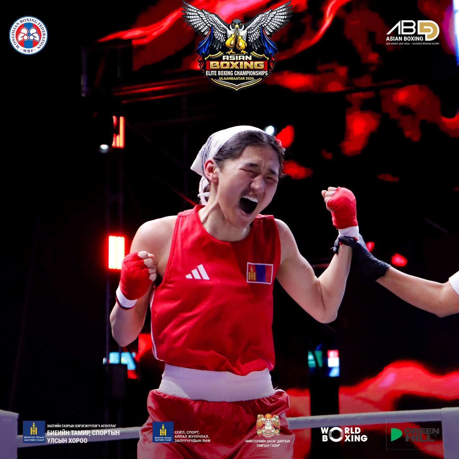 Боксын “УЛААНБААТАР 2026” Ази тивийн аварга шалгаруулах тэмцээн үргэлжилж байна. Өнөөдөр дөрөвдүгээр сарын 7-ны өдөр Азийн аваргын ес дэх өдрийн хагас финалын тулаанууд эхэллээ. Манай улсаас эмэгтэйчүүдийн 48 кг-ын жинд залуу тамирчин Энх-Амгалангийн Номундарь, Казахстаны Айгерим Саттибаеватай тулалдаж ялалт байгууллаа. Ийнхүү Э.Номундарь мөнгөн медалийн болзол хангаж алтан медалийн төлөө тулалдах эрхтэй боллоо.