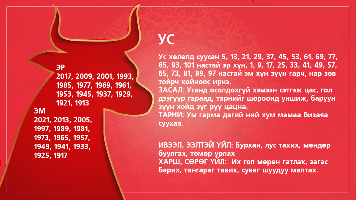 | XVII жарны "Цөөвөр" хэмээх төмөр үхэр жилийн зурхай |
