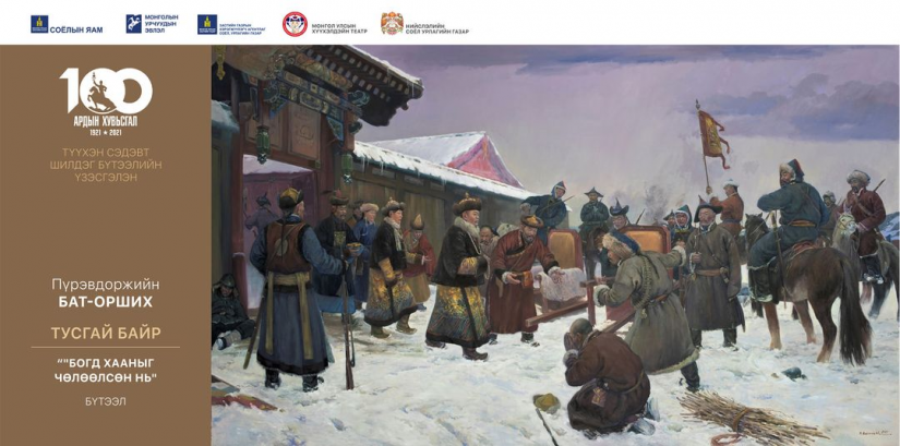 Уг үзэсгэлэн нь Ардын хувьсгалын 100 жилийн ойг тохиолдуулан түүхэн сэдэвт дүрслэх урлагийн бүтээлүүдийг шинээр төрүүлэх, шинэ залуу уран бүтээлчдийн түүхэн судалгааг өргөжүүлэх, нийгмийг соён гэгээрүүлэх үйл явцад дүрслэх урлагийн нөлөөллийг нэмэгдүүлэх, хүүхэд залуучуудад зориулсан цуврал уран бүтээл хийх зорилготой юм. Уншигч та бүхэнд “Түүхэн сэдэвт шилдэг уран бүтээл”-ийн үзэсгэлэнгийн шилдэг таван бүтээлийг танилцуулъя.