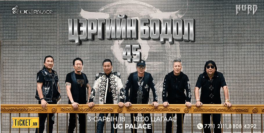 ХУРД хамтлаг ''Цэргийн бодол-45” тоглолтоо гуравдугаар сарын 18-ны 18 цагт ганцхан удаа хөгжим дуугаралт, гэрэл техникээр дэлхийн стандартад нийцсэн Уран ган палас буюу UG palace-д хийнэ.