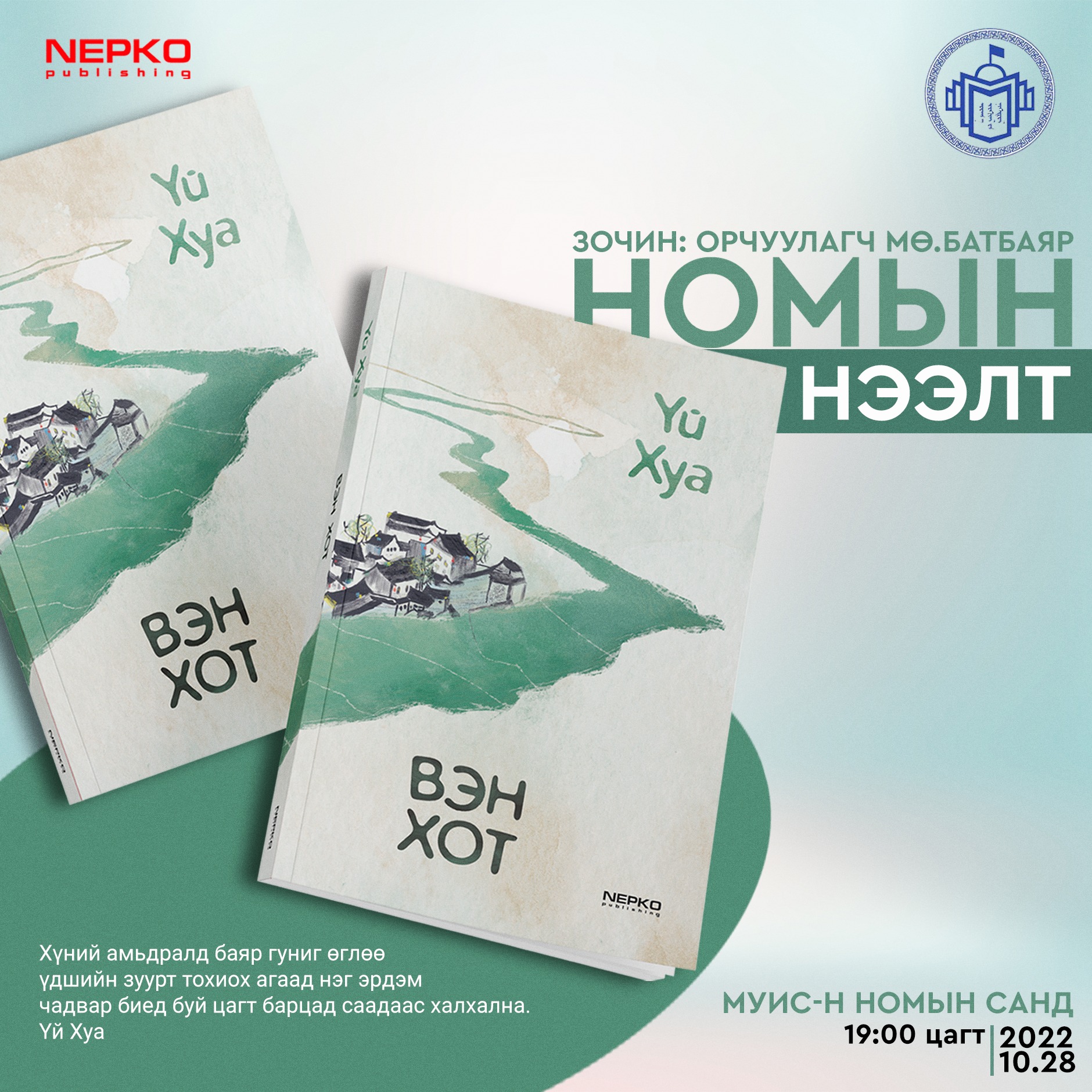 | Орчуулагч М.Батбаярын "Вэн хот" номын нээлт энэ сарын 28-нд болно |