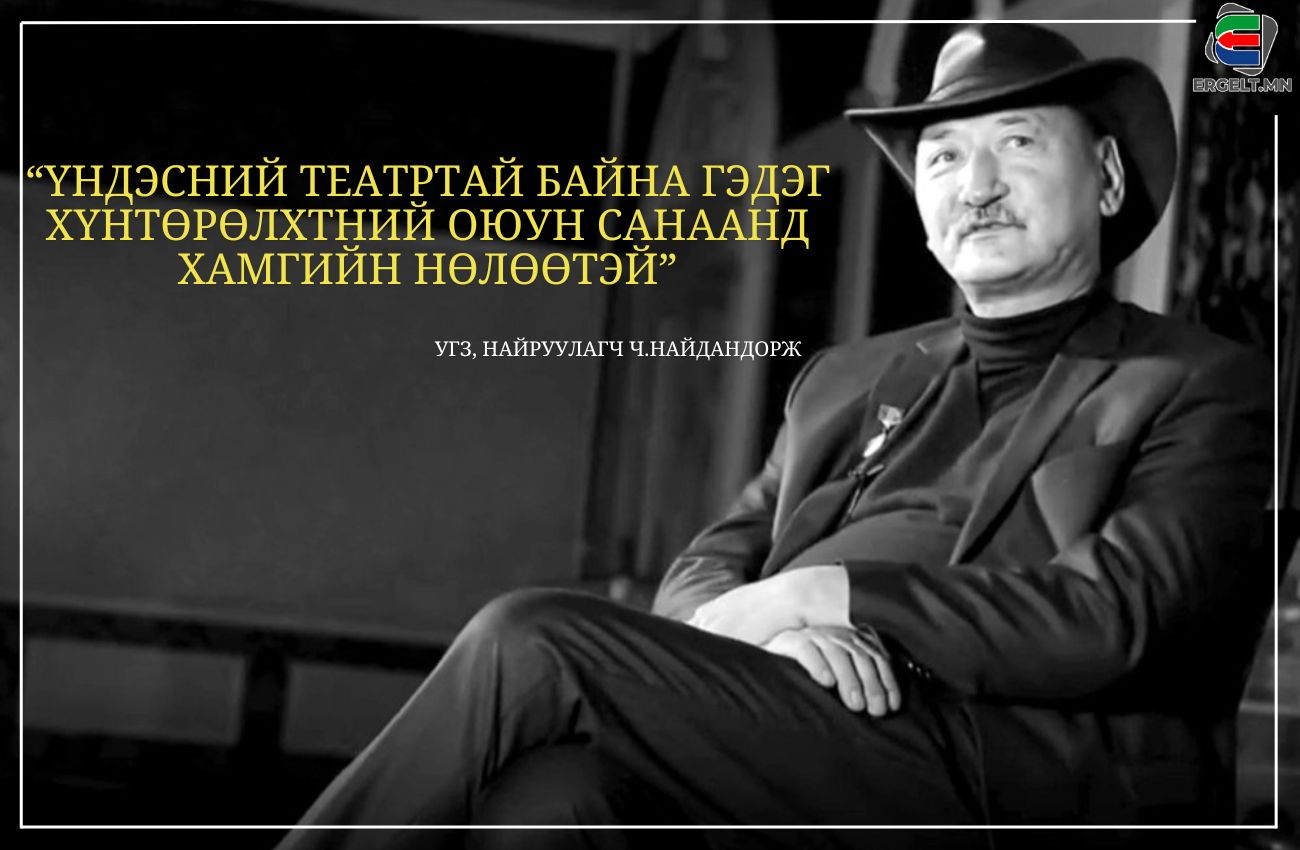 Харин Урлагийн гавьяат зүтгэлтэн, найруулагч Ч.Найдандорж “Ямар ч улс үндэстэн өөрийн хэл, соёлоо хадгалсан үндэсний театртай байна гэдэг хүнтөрөлхтний оюун сэтгэлгээнд их чухал нөлөөтэй. Тиймээс ХХ зуунд манай алтан үеийнхэн маш үсрэнгүй хөгжлийг хийж, нүүдэлчдийнхээ оюун сэтгэхүйд маш том хувьсгалын дайтай өөрчлөлтийг авчирч чадсан. Өөрөөр хэлбэл, мэргэжлийн жүжигчин, мэргэжлийн байртай, дэлхийн хүнтөрөлхний утга зохиолын өв сангаас сорчилж, Монголын оюун санаанд авчирч хийснээрээ том гавьяатай. Харин цаашид авьяаслаг залуус гал алдахгүй хөгжүүлж, болж өгвөл дэлхийн түвшинд гаргах нь чухал" гэсэн нь онцлог байв. Улсын драмын эрдмийн театрын дунд үеийн уран бүтээлчид хэлэлцүүлэгт сууж, ахмад уран бүтээлчдийнхээ үгийг сонсож байв.