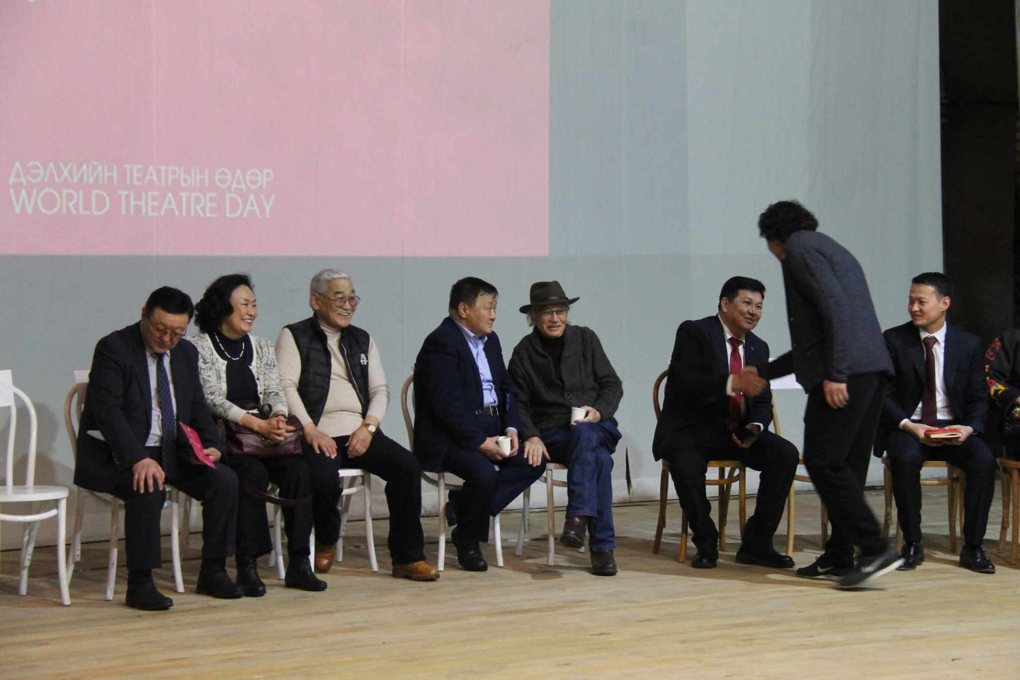 Улсын драмын эрдмийн театрын уран бүтээлчид жил бүрийн дэлхийн театрын өдөр буюу гуравдугаар сарын 27-нд театрын үе үеийн уран бүтээлчдээрээ уулзан, хөгжил, дэвшлийн тухай ярилцаж, хэлэлцүүлдэг уламжлал өнгөрсөн жилээс тогтсон билээ. Тэгвэл энэ жилийн хэлэлцүүлэг “УРЛАГ БОЛ ЭНХ ТАЙВАН” уриан дор өчигдөр тун амжилттай болж өндөрлөлөө. Хэлэлцүүлэгт Улаанбаатар хотод үйл ажиллагаа явуулж байгаа 12 театрын удирдлага болон найруулагч, уран бүтээлчид оролцсон юм. Тухайлбал, Ардын жүжигчин П.Цэрэндагва, Н.Сувд, Б.Жаргалсайхан, МУГЖ З.Жарантав, Б.Тунгалаг, Г.Равдан, Ардын багш Н.Ганхуяг, Урлагийн гавьяат зүтгэлтэн Ч.Найдандорж, Төрийн шагналт, найруулагч Н.Наранбаатар тэргүүтэй уран бүтээлчид оролцсон юм. Хэлэлцүүлэгт уран бүтээлчдийн зүгээс дуу нэгтэйгээр гаргасан санал нь театр урлагийн зөвлөлтэй болох. Ингэснээр энэ төрлийн цаашдын хөгжилд илүү ахиц дэвшилт гарах тухай ярьсан юм.