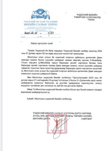 | Улсын арслан Э.Оюунболд барилдах эрхээ сэргээх хүсэлтийг Бөхийн салбар хороонд хүргүүлжээ |
