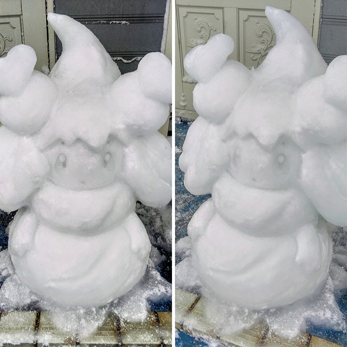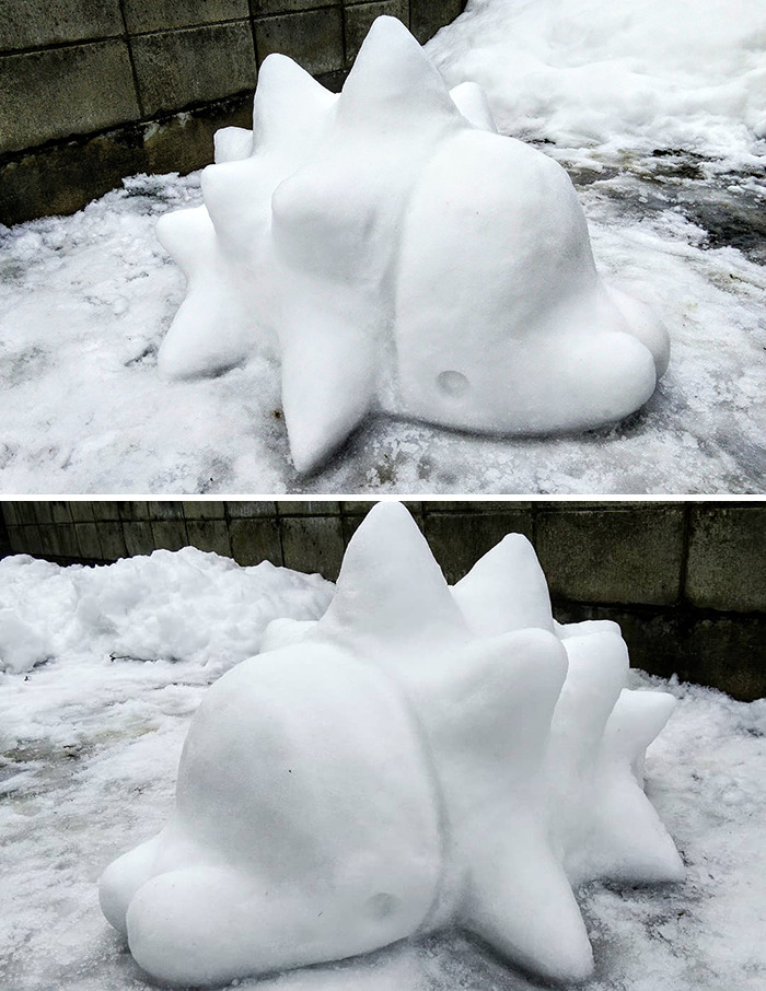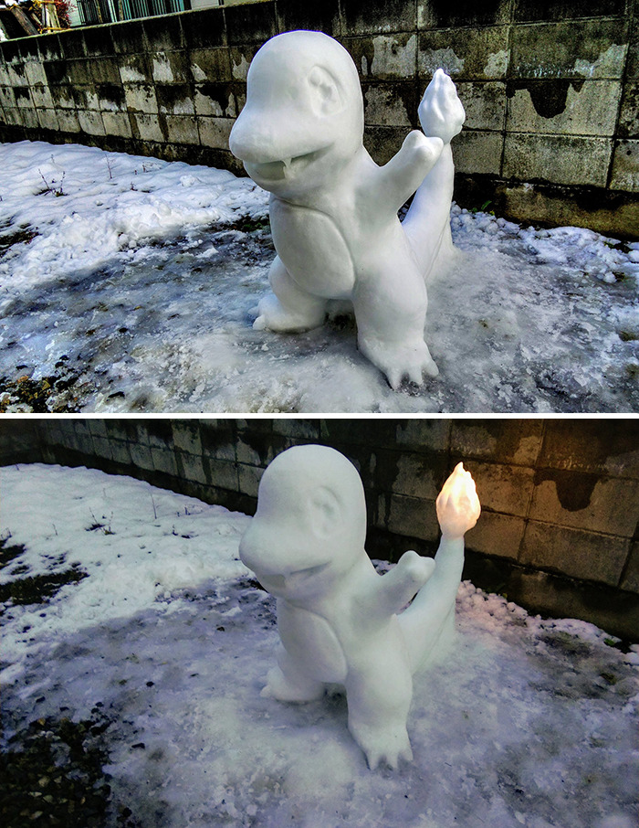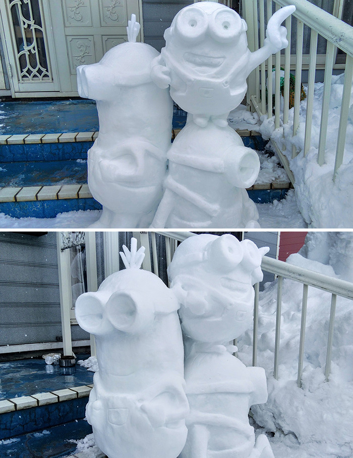 Цасаар уран баримал хийх нь материалын хувьд олдоц муутайгаас гадна улирлаас хамааран бүтээл хийх боломж бага билээ. Жиргээнд mokomoko_2015 нэрээр алдаршсан, Японы уран бүтээлч Мокомокогийн цасаар Жибли болон Гозилла, Минион зэрэг хүүхэлдэйн баатруудыг урласан бүтээлүүдийг хүргэж байна.