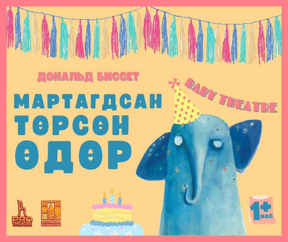 "Prо" театрын уран бүтээлчид "Мартагдсан төрсөн өдөр" хүүхэлдэйн жүжгийг энэ сарын 27, арваннэгдүгээр сарын 10-нд тус бүр 15:00 цагаас РЦНК-ийн тайзнаа тоглоно.