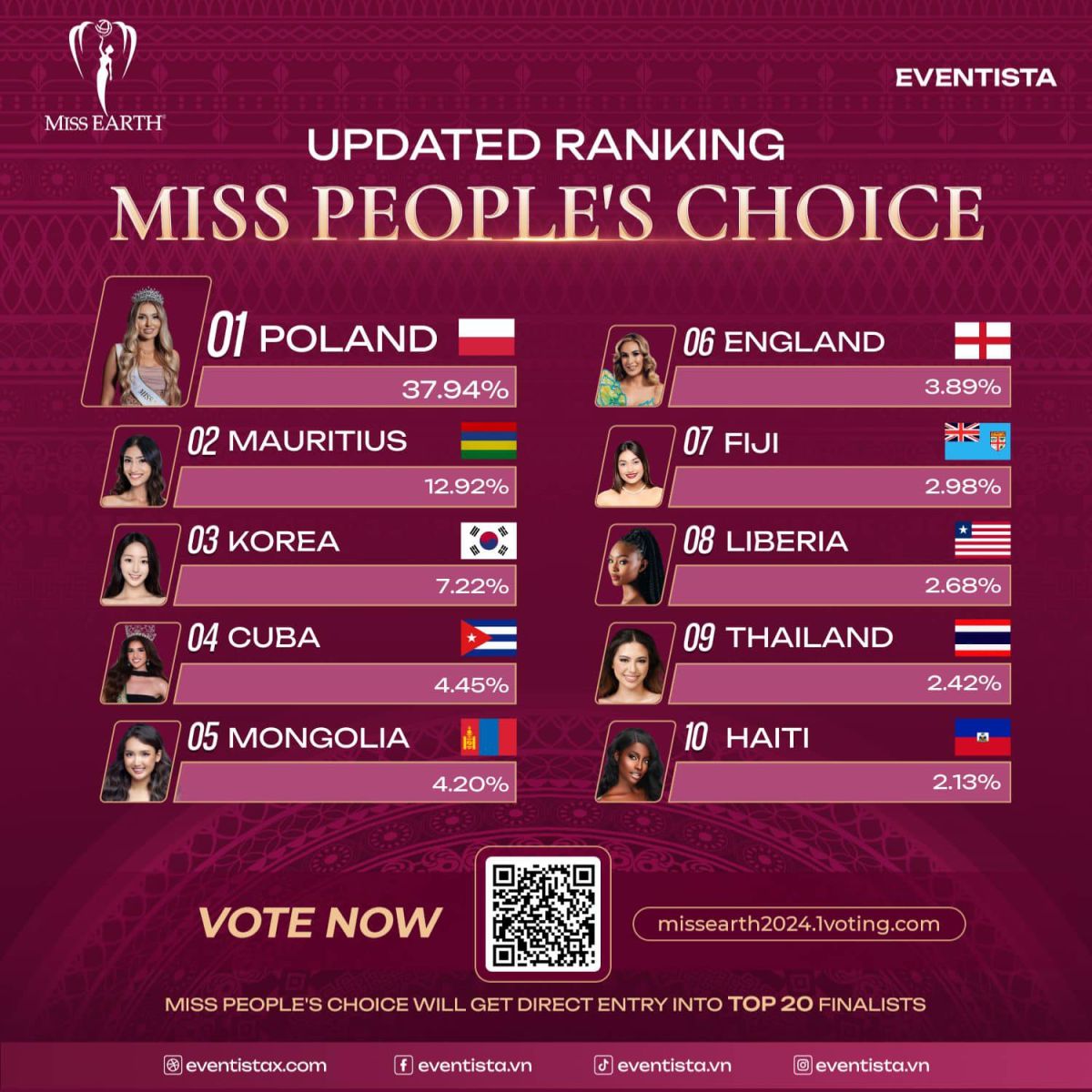 | “Miss Earth 2024” тэмцээнд улсаа төлөөлөн оролцож буй П.Цэлмэг тавдугаарт жагсаж байна |