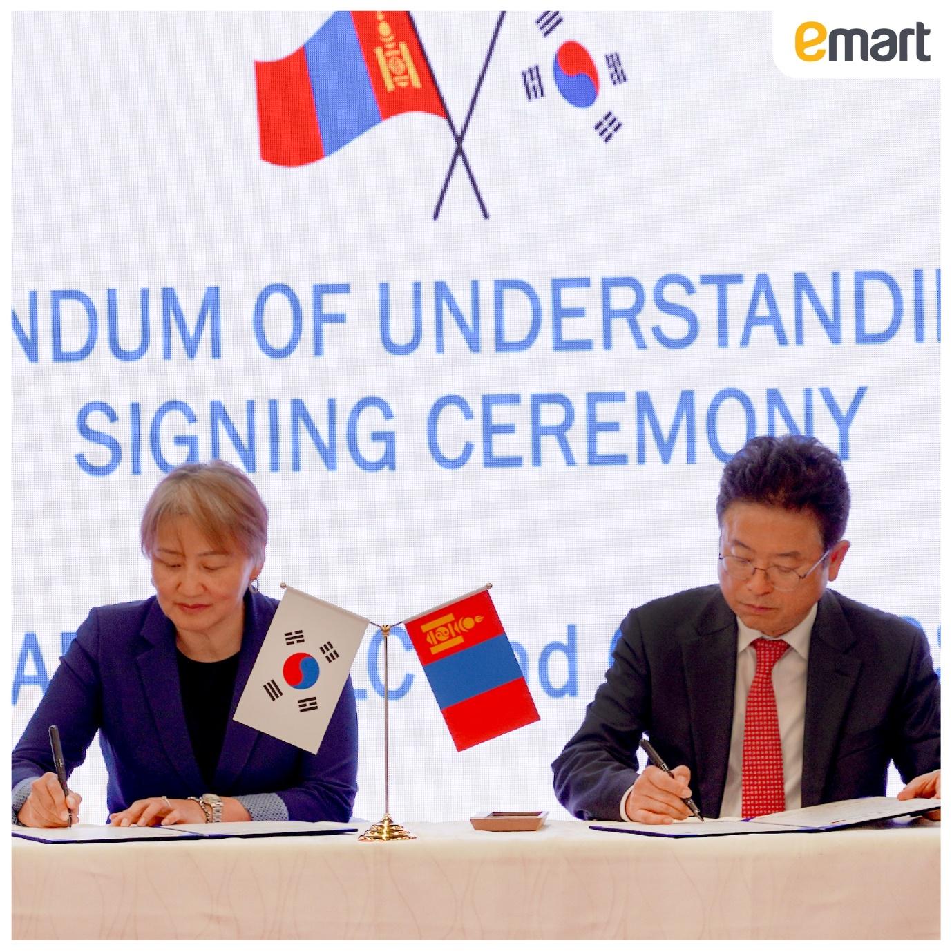 ‘’Скай хайпермаркет’’ ХХК-н Гүйцэтгэх захирал Л.Жавзмаа болон БНСУ-ын Гёнсанбүг аймгийн засаг дарга И Чоль Ү нар хамтын ажиллагааны санамж бичиг үзэглэлээ.