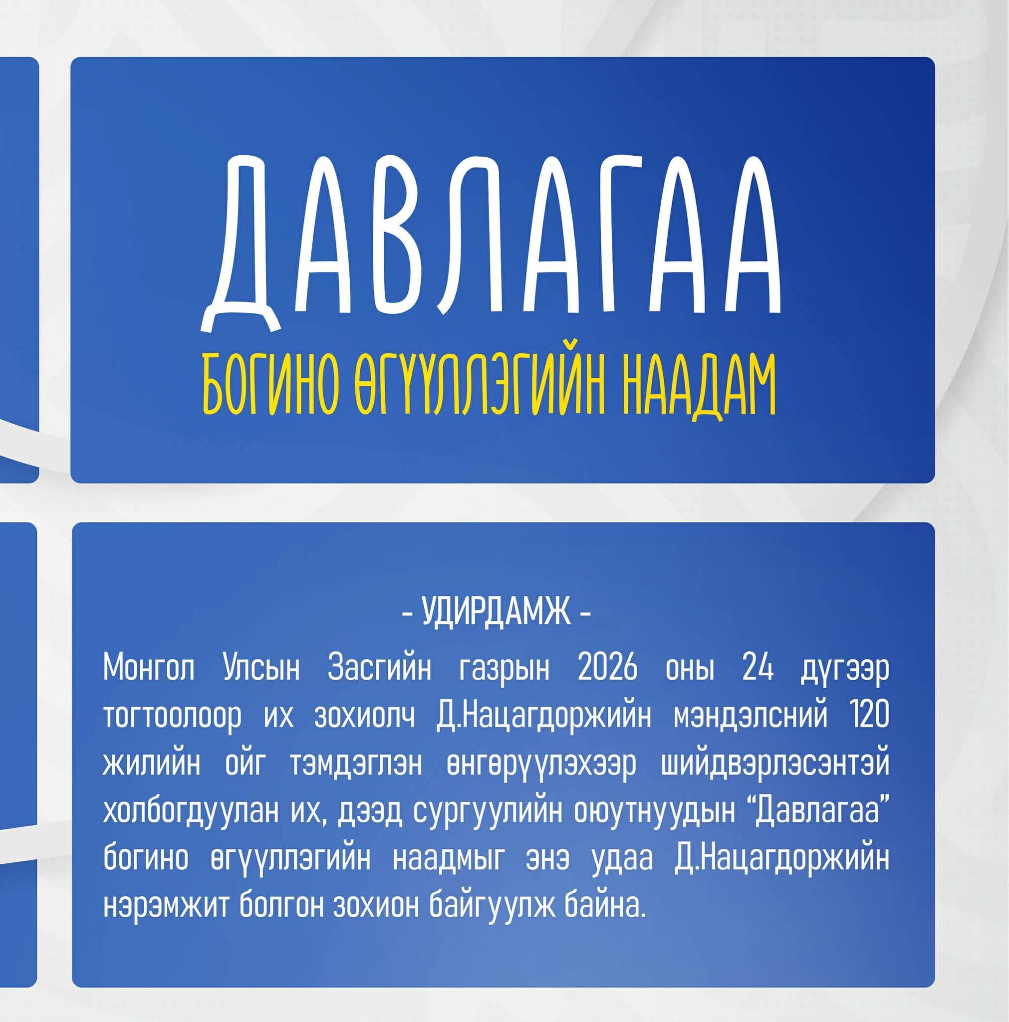 | Д.Нацагдоржийн нэрэмжит "Давлагаа-2026" богино өгүүллэгийн наадам болно |