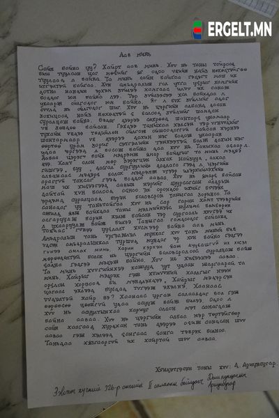 Сайн байна уу? Хайрт аав минь. Хүү нь таны тойроод биш туулсан цаг мөчийг яг одоо үеийн найз нөхөдтэйгөө туулаад л байна. Та минь сайн байгаа гэдэгт маш их итгэлтэй байгаа. Хүн амьдралын гол утга учрыг хамгийн дотно нандин эрхэм зүйлээ хамгаас их санаж боддог юм байна лээ. Тэр л зүйлсээ хол байхдаа ухрааж ойлгодог шиг. Хүү нь цэргийн албанд дасан зохицоод найз нөхөдтэй ч болоод их зүйлийг шамдан суралцаж байна. Өвдөг дээрээ сөхрөөд шантарч унамаар үе зөндөө байсан. Гэхдээ таныхаа хэлсэн тэр л нандин үгнүүдийг тухайн үедээ төдийлөн сайн ойлгодоггүй байсан хэрнэ шантармаар үе дээрээ дахин нэг бодож ухааран өөртөө урам зориг сэтгэлийн тэнхээтэй болж дахин нэг удаа эргээд л босож байна даа хүү нь. Ааваа цэрэгт байх ямар мэдрэмж төрүүлдгийг та минь мэднэ дээ.