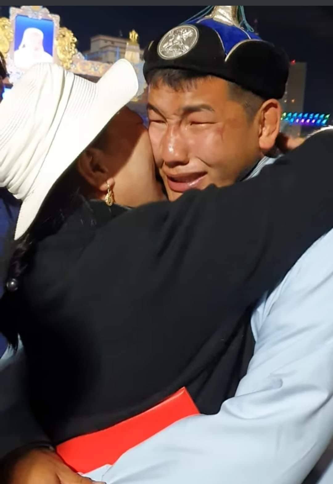 Харин манай хүн хажууд сууж чадахгүй догдлоод байсан. Тийм болохоор цагдаа нар барилдаан дуусангуут ханийг минь дэвжээ рүү оруулчихсан юм. Тэгээд хүүгээ дуудаж, үнсээд уйлсан. Би ч ялгаагүй хүүдээ үг хэлж чадахгүй, хоолой зангирч, нулимс аяндаа урсаад л байсан. Тэр үед сэтгүүлчид надаас ярилцлага авах гээд ирсэн. Тэгэхэд нь хоолой зангираад юун юм ярих манатай байлаа. Хүүгээ барилдсанаас хойш жил бүрийн наадмыг Төв цэнгэлдэх хүрээлэнд очиж, үзэж байгаа юм.