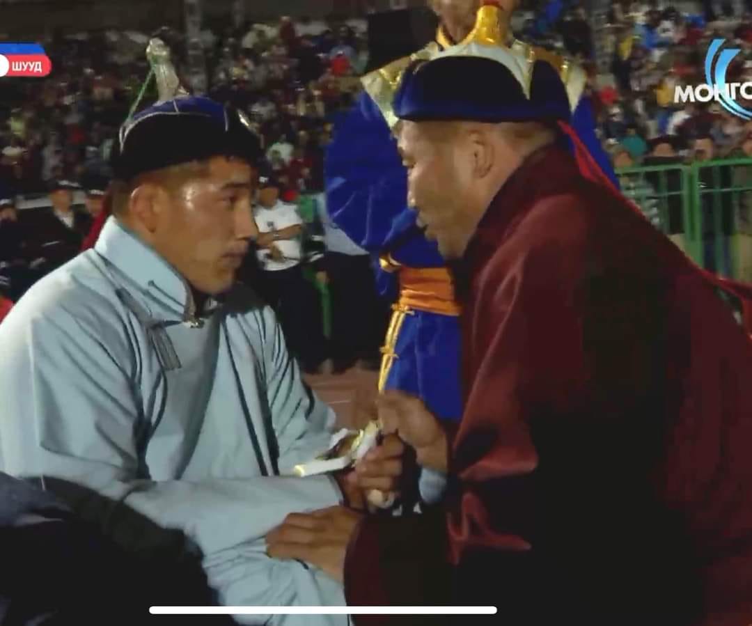 -Монголчуудын хэзээ ч мартахааргүй сайхан наадам болсон гэхэд эргэлзэхгүй байна. Мэдээж хүүгээрээ бахархаж, наадамчин олонтойгоо хамт догдолж, хүлээж үзсэн. Хүүгээ үзүүр, түрүүнд тунаж үлдэхээр нь сэтгэл улам хөөрч, догдолж, заримдаа тайвшрах гэж хичээсэн. Тэгээд хүүгээ “Түрүүлчихээсэй, түрүүлчих байх” гээд дээлийнх нь захыг мушгиж суулаа. Хүү нь улсын их баяр наадмын үзүүр, түрүүнд үлдчихээд дээлийнх нь захыг мушгиад сууна гэдэг аав бүхэнд тохиохгүй ховорхон хувь заяа юм билээ.