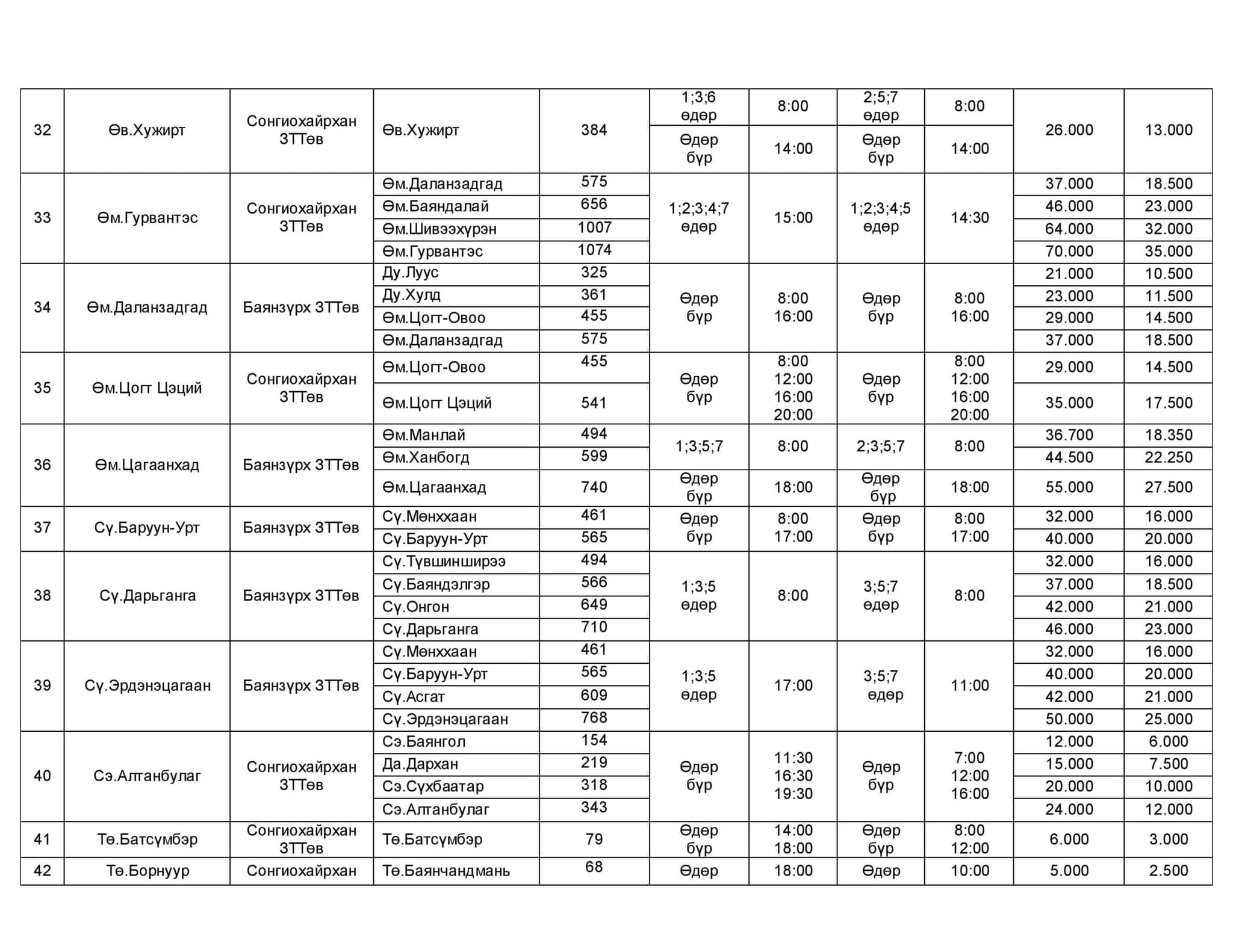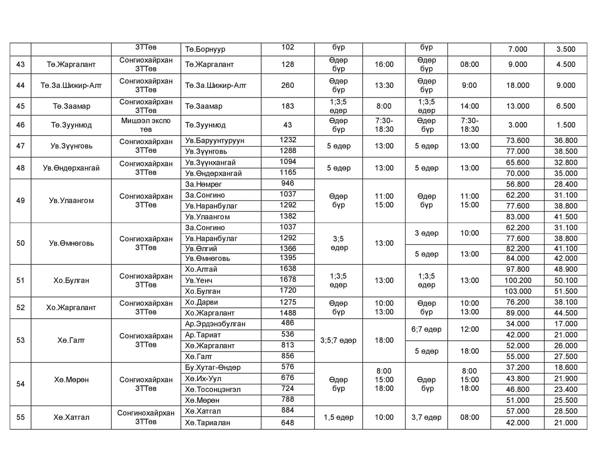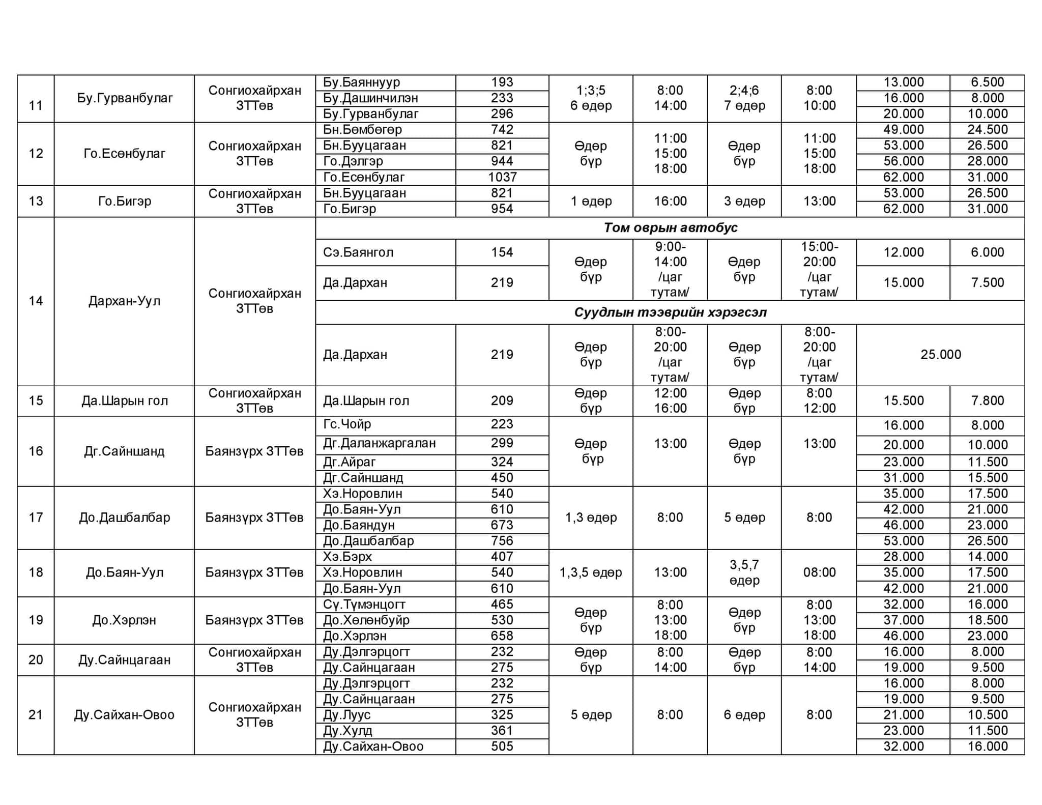 Хот хоорондын нийтийн зорчигч тээврийн хөлс 2013 оны долдугаар сараас хойш нэг километр нь 45-55 төгрөг байсан. Гэвч цар тахлын улмаас зорчигчийн урсгал буурч, шатахууны үнэ нэмэгдсэн тул аж ахуй нэгжүүд хот хоорондын зорчигч тээврийн хөлсөө нэмжээ. Тодруулбал, Зам, тээврийн хөгжлийн сайдын 2019 оны 374 дүгээр тушаалын хоёрдугаар хавсралтаар нэг хүн.километрийн өртгийг 60-75 төгрөг байхаар тогтоосныг баримтлан нэг хүн.километрийн өртгийг 60-65 төгрөг болгожээ.