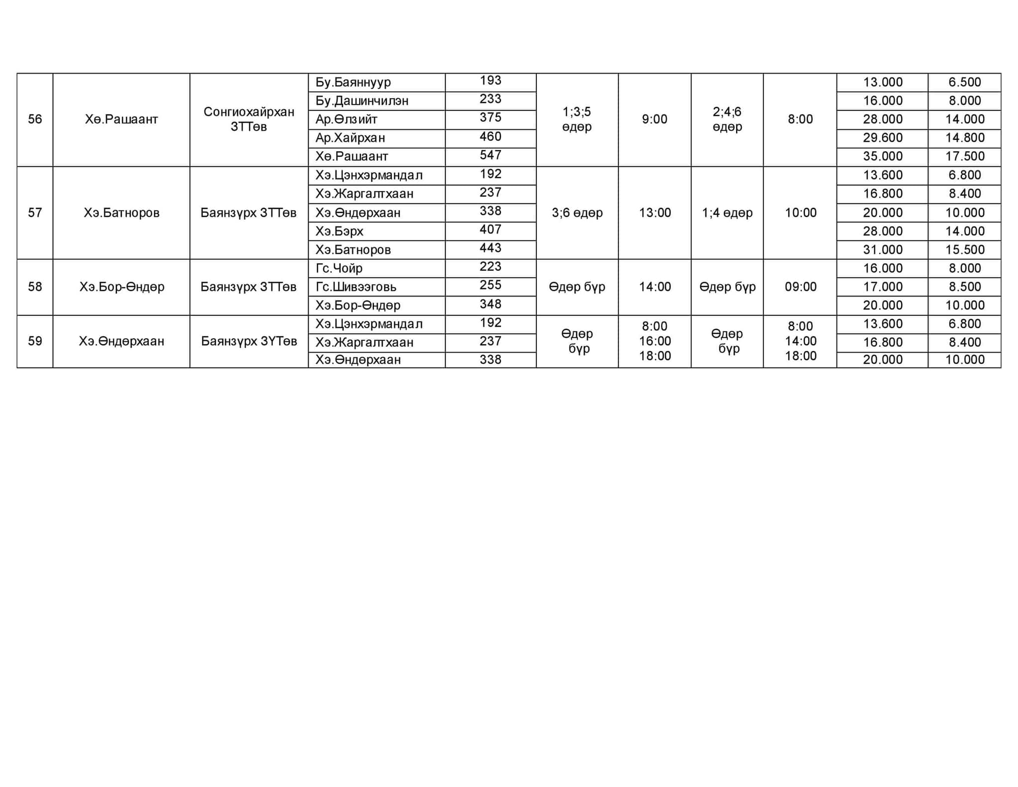 Хот хоорондын нийтийн тээврийн чиглэлийн тариф
