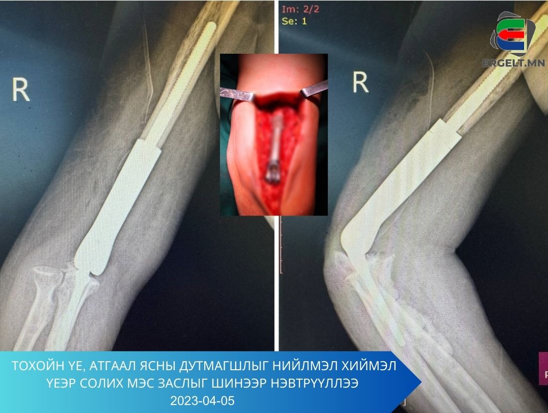 Өвчтөний хувьд авто осолд ороод, машины хаалганы завсар гараад хавчуулсан байсан. Анх осолд ороод ирэхэд нь бутарсан ясыг нь түүж авч, эмчилгээ хийсэн. Үнэндээ гарыг буцаж хадахгүй боломжгүй байсан учир энэ хагалгааг хийхээр болсон юм. Тэгээд зургаан сар биеийг нь ажиглаж байгаад, өнгөрсөн тав дахь өдөр 10 см хиймэл үе суулгасан. Бид БНХАУ-руу тухайн хүнийхээ гарын зураг, шинжилгээг явуулаад яг өөрт тохирсон үеийг авчирсан. Хагалгааны маргааш өвчтөн маань гараа бүрэн мэдэрдэг болоод, хоёр гараараа нүүрээ угаах, цай уух зэрэг бүх үйлдлийг хийдэг болсон. Тэгээд өвчтэй байсан гараараа “Баярлалаа эмч ээ” гээд даллаад гарлаа. Эмч хүний хувьд үүнээс илүү жаргалтай мөч байхгүй байх. Дараагийн хагалгаагаа 14 хоногийн дараа хийхээр бэлтгэж байна.