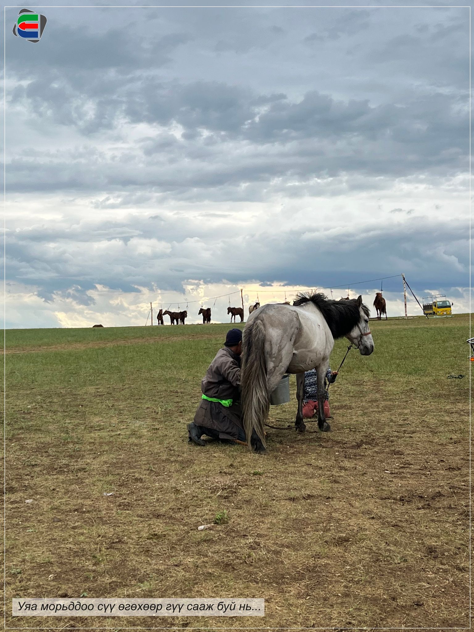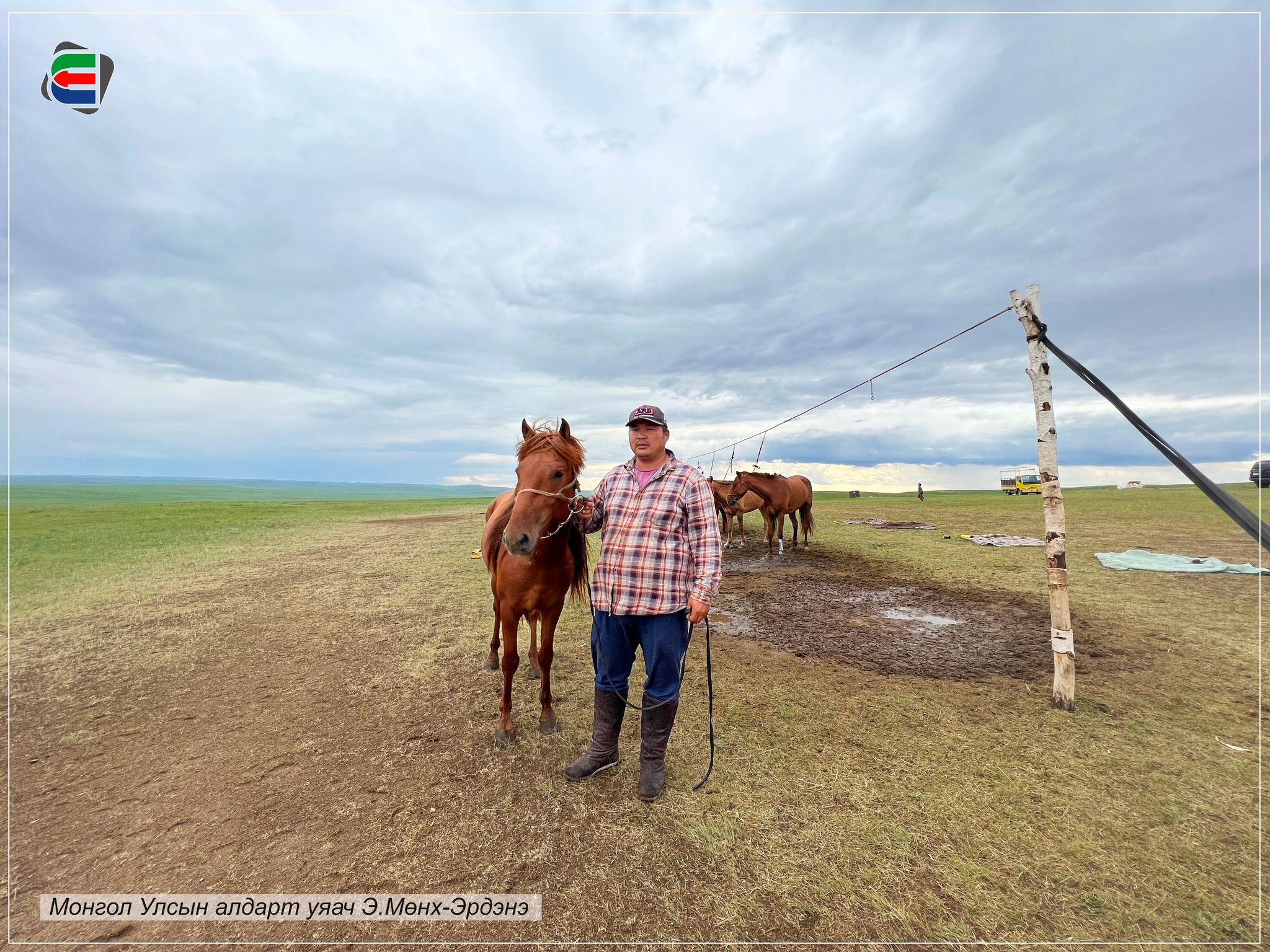 Түүний галд дөрвөн туслах уяач, гурван унаач байх бөгөөд биднийг ярилцах зүйл морьдоо хөлслөх, тэжээх, гүү сааж сүүлэх зэрэг ажлуудыг амжуулцгаах аж. Улсын алдарт уяач Э.Мөнх-Эрдэнийн хүү М.Сүлд-Очир аавынхаа уяач ухааныг өвлөх чинхүү хүсэлтэй аж. Гэвч тэрбээр нас бага тул хурдан морио унаж аавдаа тус хүргэж байгаа гэнэ. Бидний яриа дуусах үед эзнээ үгүйлсэн хүлгийн нулимс гэлтэй зөөлөн бороо зүсэрч байв.