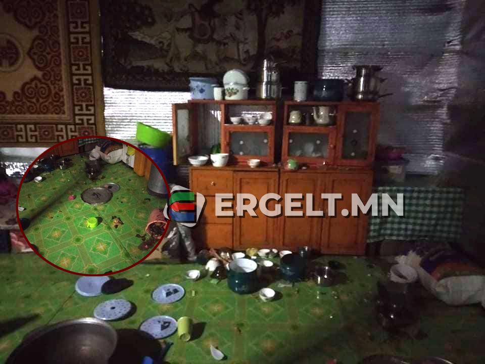 -Энд үүрээр аюул боллоо. Тэнгэр ниргэж байгаа юм шиг дуу гарч, байшин, хашаа тачигнаад сүйд болсон. Малын хашаа нурж, байшин маань нурахад бэлэн болоод байна. Үүрээр 05:10 цагт ор дайвалзаад, гэрийн эд хогшил бүгд нурж, эвдэрсэн. Муухай хашхираад гэрт байсан хөгшнөө дарж аваад, доошоо хэвтэхэд ашгүй байшин нуралгүй өнгөрлөө. Аяга, шанага хуйгаараа хагарч, хананд өлгөөтэй жааз, шилэн эдлэл унаж, хагарсан. Гэрт ер нь бүрэн бүтэн зүйл бараг алга, зурагт хүртэл хагарсан.