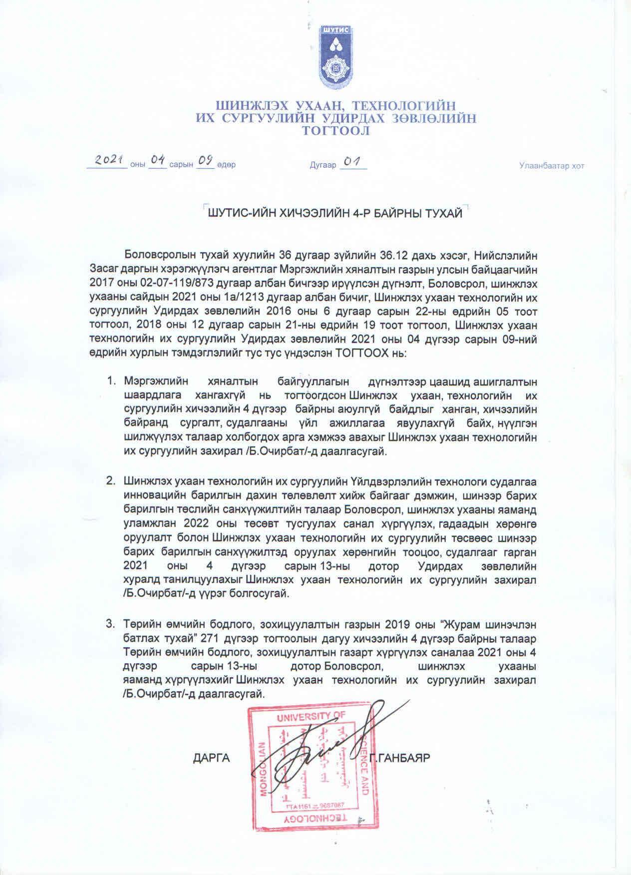 Манай ШУТИС 20 мянга гаруй оюутан, хоёр мянга гаруй багш ажилтантай том сургууль. Хичээлийн байр хүрэлцээ маш муу байдаг. Ийм байхад манай сургуулийг Худалдаа аж үйлдвэрийн дээд сургуулийн байр луу нүүж, нэг жил гаруй хугацаанд түрээсэлж үйл ажиллагаа явуул гэсэн. Гэтэл Худалдаа аж үйлдвэрийн сургууль “Байраа бүрэн чөлөөлөх боломжгүй. Зөвхөн гурав, дөрөвдүгээр давхрыг ашиглаж болно” гэсэн. Үнэндээ тэр сургуулийн барилгыг бүхэлд нь түрээслээд ч манай сургуулийн оюутан, багш нарт хүрэлцэхгүй шүү дээ. Багтаамжийн хувьд яагаад ч боломжгүй. Цаашид бид яг яах ёстой юм, бүү мэд. Одоо үндсэндээ энэ газарт сургуулийн үйл ажиллагаа явуулахгүй гэсэн бичиг гаргаад, барилгыг нураахад л энэ сургууль очих газаргүй болж байгаа юм.