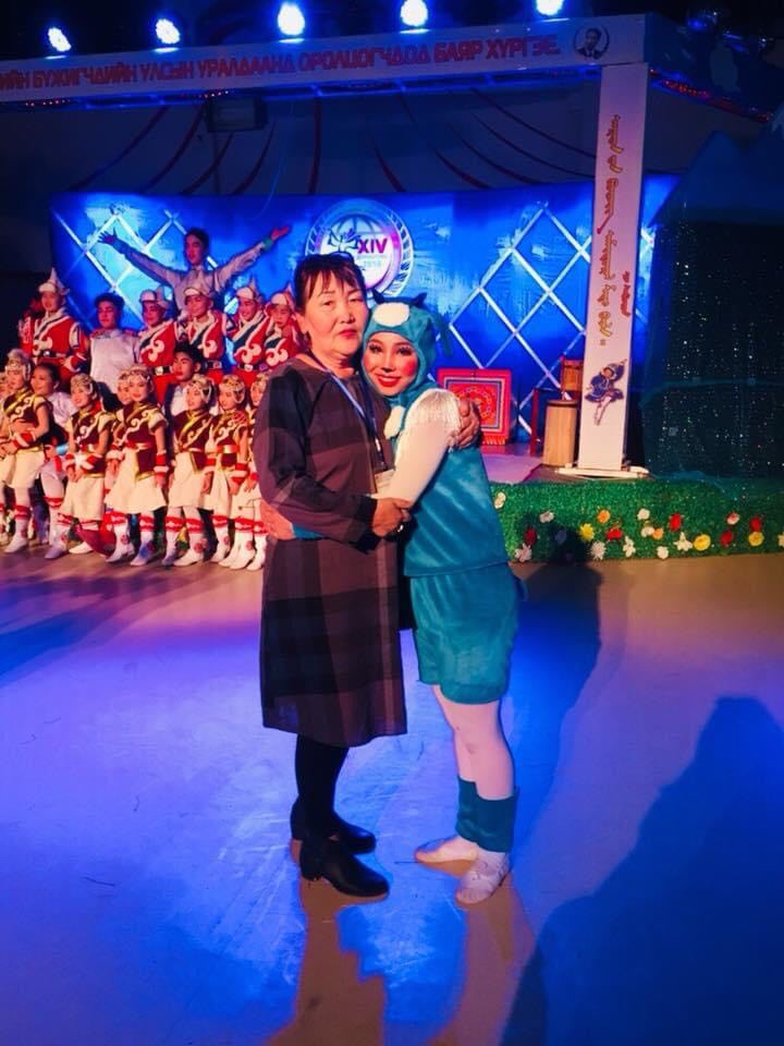 -Үгүй ээ. Намайг сандрах вий гэсэндээ миний цочроог гаргаж гэж л нуруу руу цохисон юм чинь. Д.Саранцэцэг багш маань намайг бүжгийн урлагт хөтөлж оруулсан хүн. Сараа багшийн удирдлага дор “Говийн уянга” хамтлаг есөн үе залгамжлан гарч ирсэн. Дөнгөж бүжиглэж сурч байхад миний үеийн хүүхдүүд байхгүй болохоор “Говийн уянга 5” хамтлагийн ах, эгч нартай хамт бүжиглүүлдэг байсан. Томчуудтайгаа тэмцээн уралдаанд явахад намайг шоглох нь их. Тэр болгонд багш намайг өмөөрнө. Гэрээсээ хол тэмцээнд явахдаа багшийнхаа өвөрт нь хүртэл унтдаг байсан болохоор миний хувьд ээж шиг минь л хүн дээ. Мөн 2018 оноос одоог хүртэл Н.Өсөхбаяр багшаасаа маш олон зүйлийг суралцаж байна. Би чинь олон багштай (инээв). Ар талыг минь хариуцаж, хаана ч явсан санаа зовохгүй, итгэлтэй явахад минь Н.Ундрах багш үргэлж тусалдаг. Ийм сайхан багш нартай ерөөлөөр учирсандаа талархаж явдаг. Энэ завшааныг ашиглаад багш нартаа баярлалаа, хайртай шүү гэж хэлье.