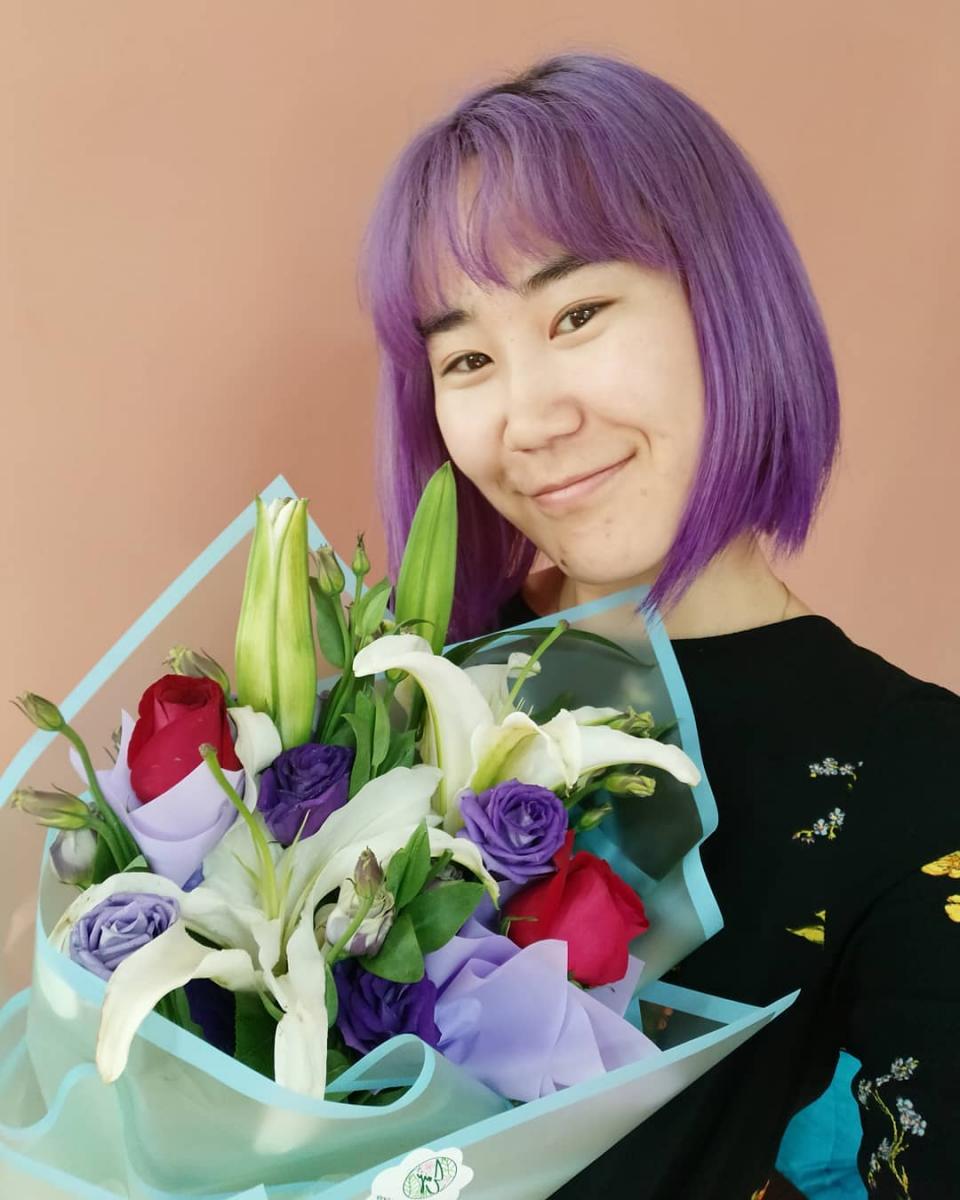 -Би бүх өнгөнд дуртай. Тод, гоё өнгөтэй зураг харахаараа догдолдог. Тэгээд л үсээ тод өнгөөр буддаг. Тийм болохоор миний зургууд их тод өнгөтэй, хурц санагддаг. Юу зурах вэ гэхээсээ өмнө ямар өнгөтэй зураг зурахаа төсөөлж, боддог. Хэлбэр талаасаа бол бодитой зураг зурдаггүй ээ. Одоогоор өөрийн стилиэ олоогүй байна.