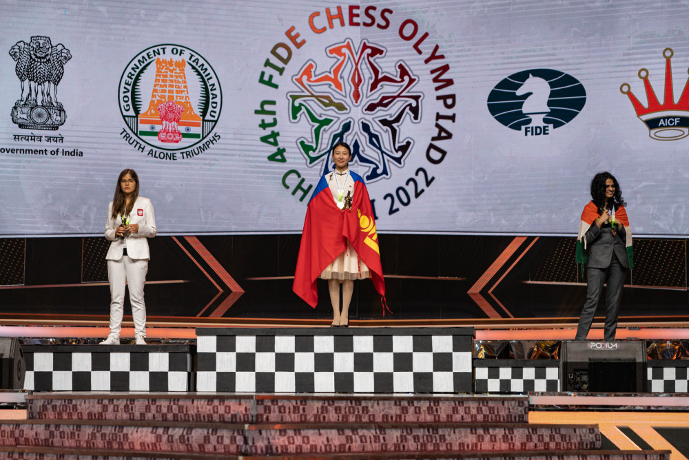-Сайн явж ирлээ. Баярлалаа. Дэлхийн шатрын 44 дүгээр олимпиадад эх орноо төлөөлж, анх удаа оролцон, дасгалжуулагч, багийн эгч нарынхаа тусламж, дэмжлэгийн хүчээр амжилттай тоглоод ирлээ. Манай баг нэгдмэл, нэг зорилготой байж чадсан нь багаараа амжилт гаргах үндэс болсон.