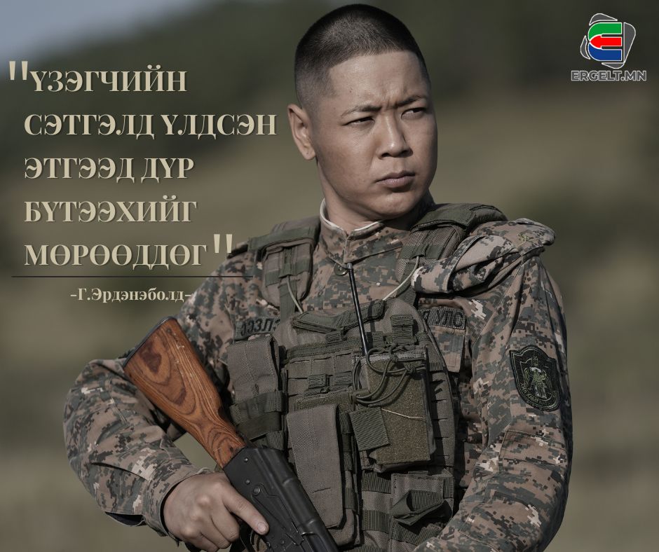 -Би цэрэгт татагдаад удаагүй шинэ цэргийн дүр дээр ажилласан. Багаасаа аав ээжгүй өссөн, ахыгаа ямар айлд өргүүлснийг мэдэхгүй, шинэ цэрэг учраас дээд оны ах нараасаа их зүйл сонсож, суралцдаг, дархан хил гэж ямар үнэ цэнтэйг мэдэрсэн залуугийн дүр байлаа. Миний бодлоор бид ганц л олдох энэ амьдралаа үргэлж хайрлах ёстой юм шиг санагдаг. Учир нь, бидний эрүүл энх, аюулгүй байдлын төлөө нүдээ ч цавчилгүй энхийн манаанд зогсож байгаа тэдгээр эр цэргүүдээ хүндэтгэн бид ч гэсэн өөрсдийнхөө аюулгүй байдлыг хангах ёстой гэж боддог.