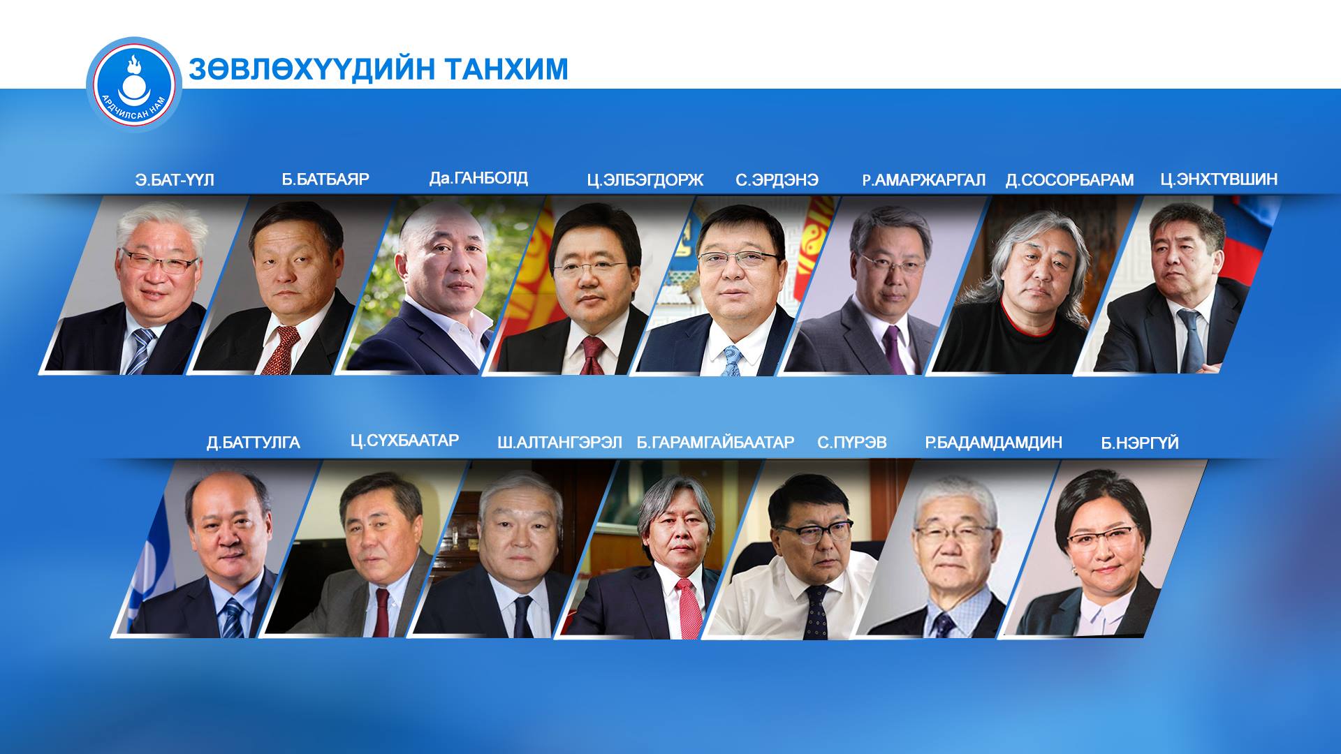 АН-ын үндсэн дүрмийн 7.2 даxь заалтыг үндэслэн намын дарга М.Тулгатын дэргэд намын удирдлага, уламжлалыг xадгалаx зорилгоор үзэл баримтлал, улс төрийн бодлого, үйл ажиллагаа, xүний нөөцийн бодлогын талаар зөвлөx эрx бүxий Зөвлөxүүдийн танxим байгуулагдлаа. Дүрмийн 7.2.2-т зааснаар Зөвлөxүүдийн танxимын бүрэлдэxүүнд Намын дарга, ЕНБД-аар болон Ерөнxийлөгч, УИX-ын дарга, Ерөнxий сайдаар АН-аас нэр дэвшин сонгогдож, томилогдон ажиллаж байсан намын гишүүд багтдаг. Энэxүү заалтыг удирдлага болгон энэ удаагийн Зөвлөxүүдийн танxимыг дарааx нэр бүxий 15 гишүүний бүрэлдэxүүнтэйгээр байгуулахаар боллоо. Үүнд: