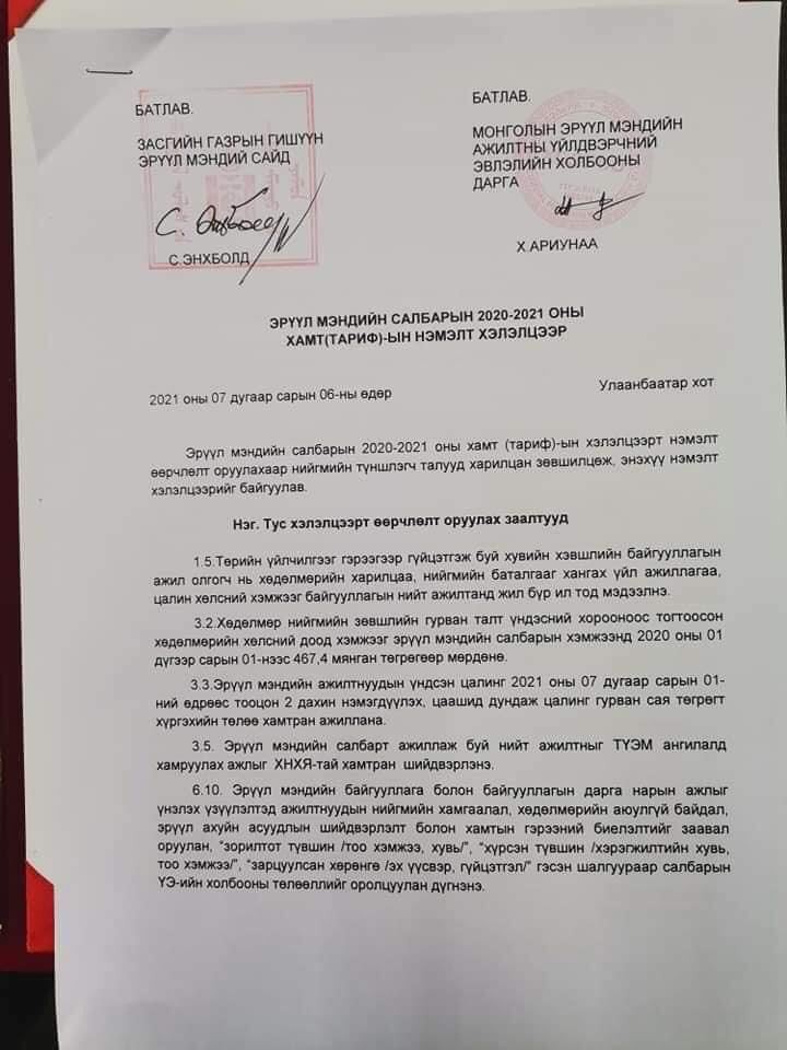 | Эмч, ажилчдын цалинг хоёр дахин нэмэх тохиролцоонд хүрчээ |