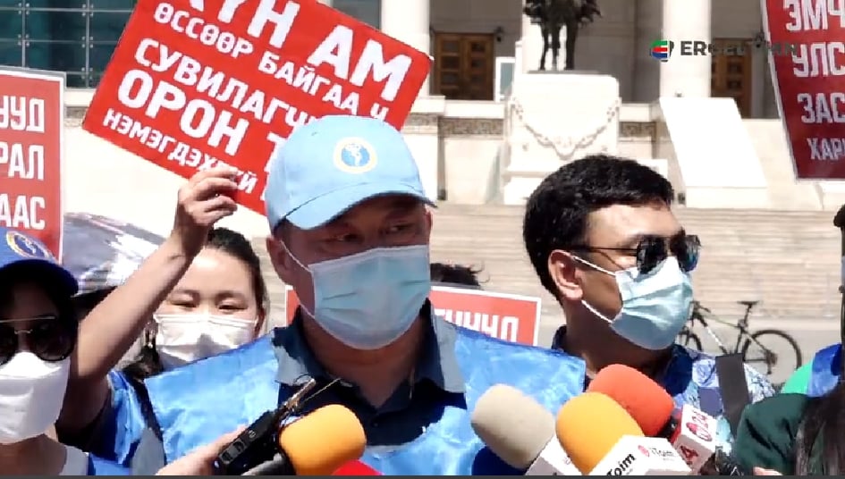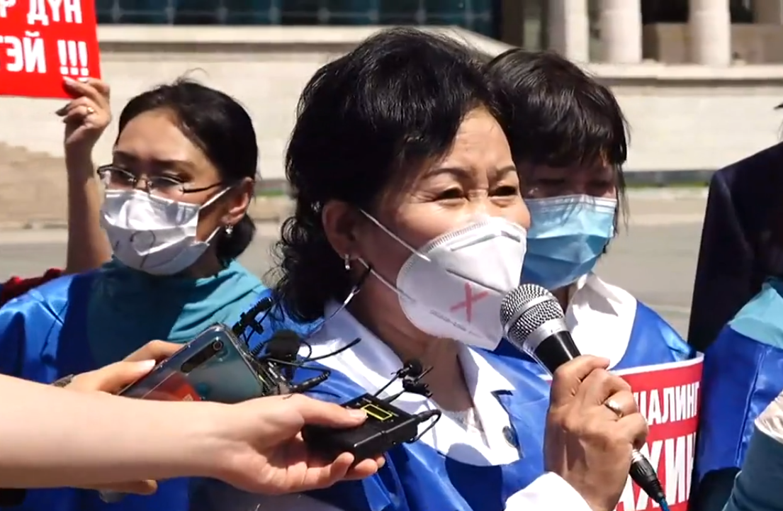 Харин Эрүүл мэндийн ажилтнуудын үйлдвэрчний эвлэлийн дарга Х.Ариунаа “Эрүүл мэндийн 56 мянган эмч, ажилтан хоёр жилийн хугацаанд цар тахлын эсрэг тасралтгүй ажиллаж байна. Гэсэн ч халдварын тархалт буурахгүй, өдөрт 10 гаруй хүний амь нас эндэж байна. Энэ бол үндэсний аюулгүй байдалд нөлөөлж буй явдал юм. Мөн эмч, ажилтнуудын хомсдолд орж байгаа нь 3.2 сая хүн амын амь насыг хамгаалахад хүчрэхгүйд хүрч байна. Иргэдийн амь насыг аврахын тулд эмч, ажилтнууд өөрсдөө эрүүл, аюулгүй байх ёстой. Тэд бусад улс орны эмч, ажилтнуудтай харьцуулахад 100 ам.доллар ч хүрэхгүй цалин авч байна. ажилчдын хөдөлмөрийг үнэлэх ёстой. Бид нэг удаагийн тусламж, тэтгэмж хүсээгүй” хэмээн ярилаа.