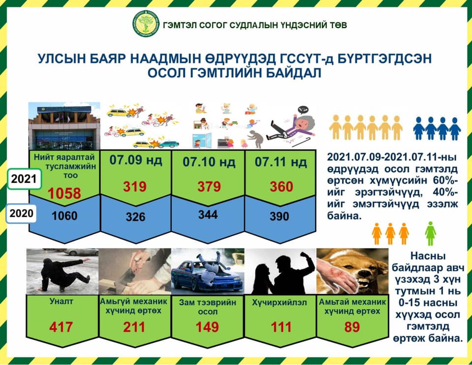 | Наадмын өдрүүдэд 1058 осол, гэмтлийн дуудлага бүртгэгджээ |