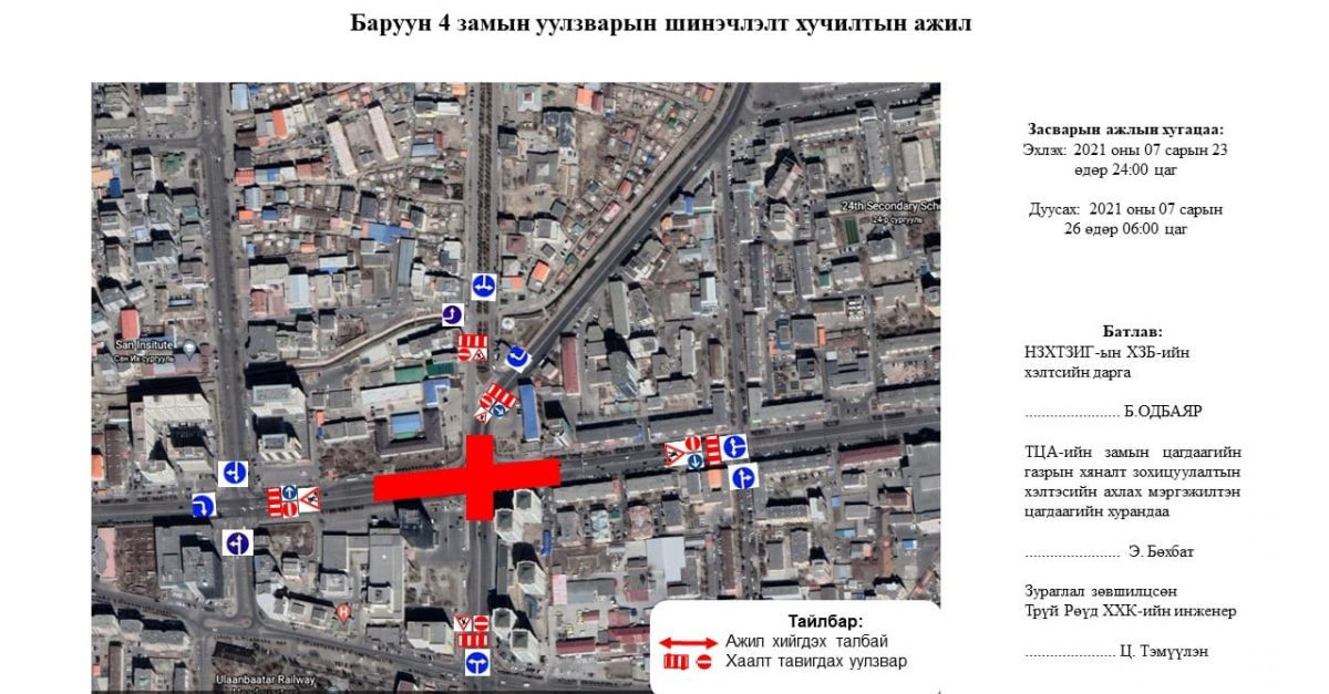 | Баруун дөрвөн замын уулзварыг маргааш 06:00 цагт нээнэ |