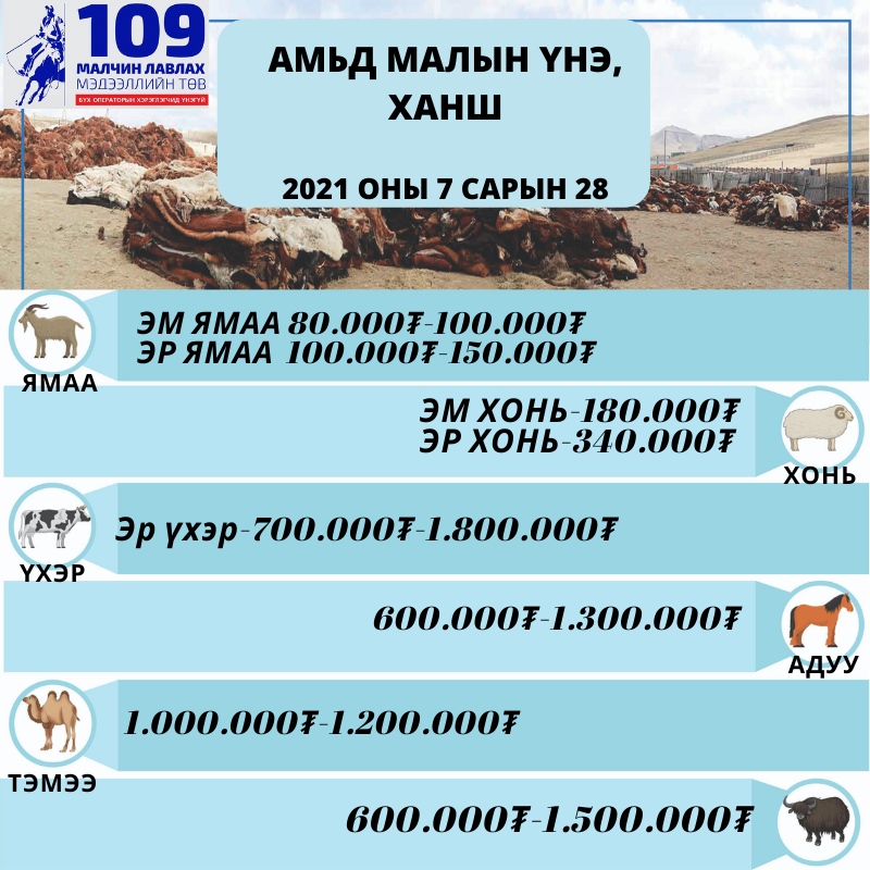 Өнөөдрийн байдлаар "Эмээлт" захад эр ямаа 100-150 мянга, эм ямаа 80-100 мянган төгрөгийн үнэтэй байна. Харин хонь 180-340, үхэр 600-1.8 сая, тэмээ 600-1.5 сая төгрөгийн үнэтэй байна. Түүнчлэн түүхий эдийн үнийг танилцуулбал, өлөнтэй арьс 1000, ноолуур 100-105 мянга, шир 10.000-15.000, адууны шир сүүлтэй 12.000, дэл 8500, цагаан адууны шир 50.000, самнасан хөөвөр 20.000 төгрөгийн үнэтэй байна.