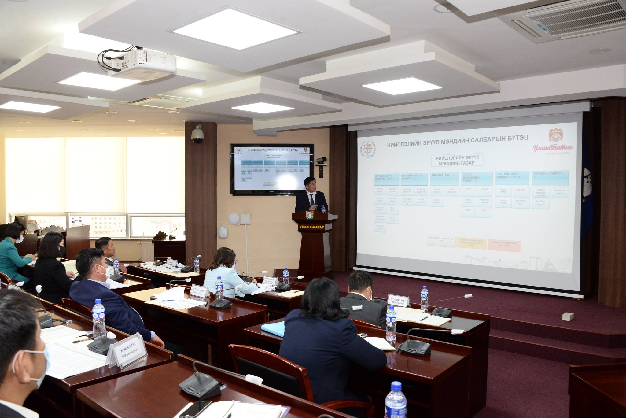 НЭМГ-ын бүтэц, хөрөнгө оруулалт, тулгамдаж байгаа асуудлын талаар тус газрын дарга Б.Бямбадорж УИХ-ын гишүүдэд мэдээлэл өгсөн юм. Тухайлбал, НЭМГ-ын харьяанд дүүргийн эмнэлэг, нэгдсэн эмнэлэг, амаржих газар, өрхийн эрүүл мэндийн төв зэрэг байгууллага ордог. Тэдгээрт 7700 орчим эмч, ажилтан ажилладаг.