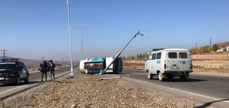 Налайхын замд "Mighty" маркийн авто машин шатахуун тээвэрлэгч "Bongo"-тэй мөргөлдөж, унасан осол гарчээ.