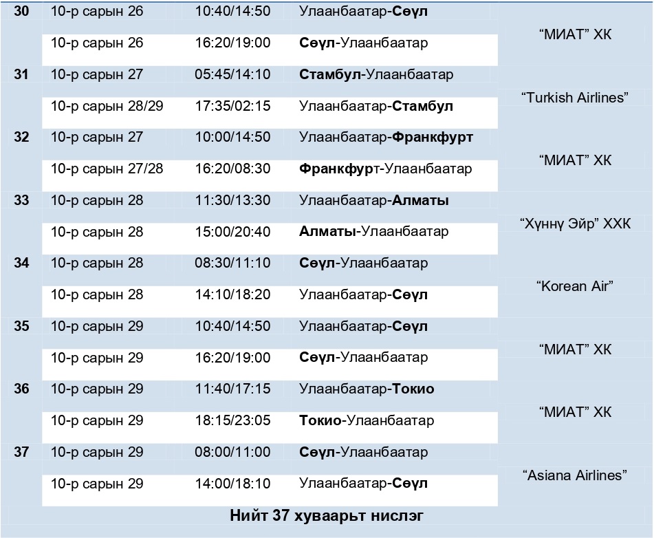 | Аравдугаар сард олон улсын 37 нислэг үйлдэнэ |
