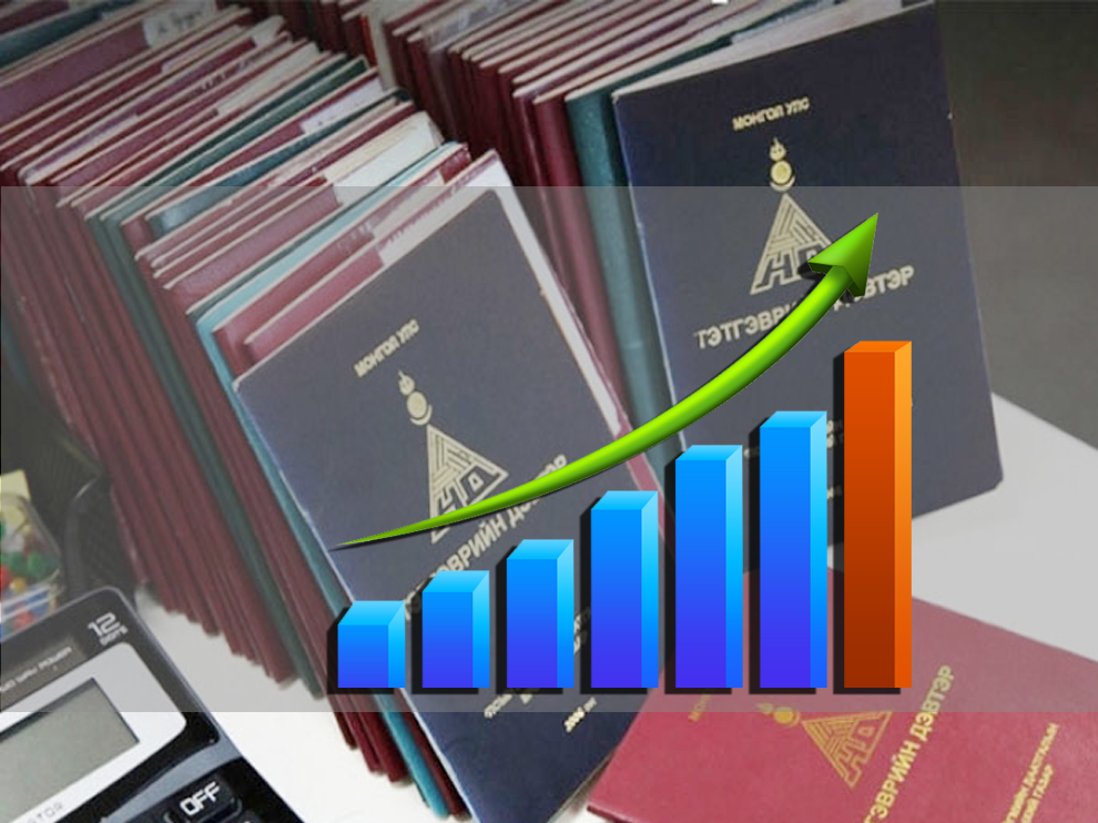 Өөрөөр хэлбэл, манай улсын нийт хүн амын 1.2 сая нь 0-18 насны хүүхэд. Үлдсэн 2.1 сая иргэний нэг сая орчим нь тэтгэвэр, тэтгэмж халамжийн үйлчилгээ авдаг. Давхардсан тоогоор 2.6 сая хүнд 72 төрлийн тэтгэмж, халамж, хөнгөлөлт үйлчилгээ олгож байна. Нийгмийн даатгалын сангаас тэтгэвэр авагчид, халамжийн үйлчилгээ авах иргэд энэ онд нэмэгджээ. Тухайлбал, энэ оны эхний найман сард тэтгэвэр авах иргэдийн тоо өнгөрсөн оны мөн үеэс 16 мянгаар нэмэгдэж, 458 мянга болсон. Мөн нийгмийн халамжийн үйлчилгээ авах иргэд 2.3 сая болж өмнөх оноос 50 мянган хүнээр нэмэгдсэн гэх статистик мэдээлэл бий.