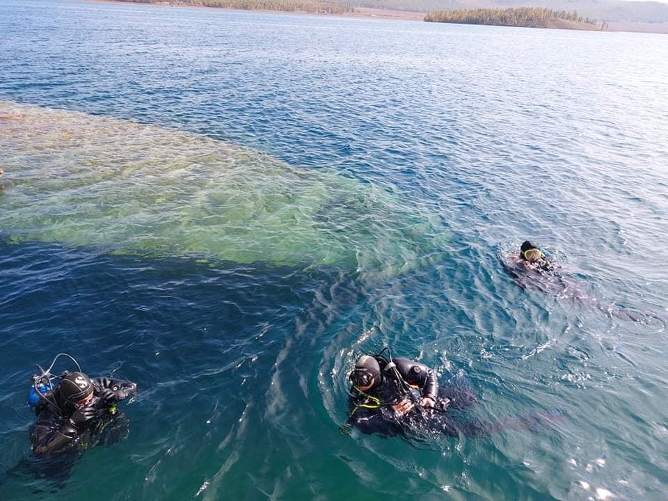 | Алба хаагчид Хөвсгөл нуурт живсэн техник хэрэгсэл илрүүлэх бэлтгэлээ хангаж байна |