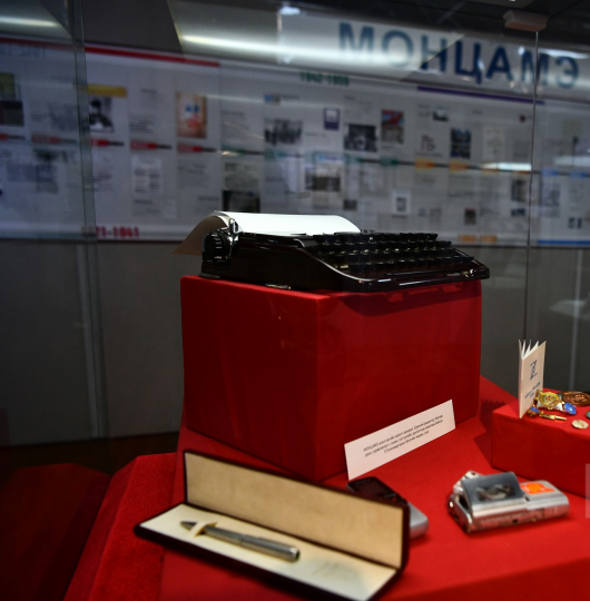 Мөн “Монцамэ” агентлагийн орлогч захирал, ерөнхий редактор, Москва дахь сурвалжлагч, сонин, сэтгүүлийн эрхлэгчээр ажиллаж байсан Э.Түмэнжаргалын бичгийн машин, үзэг зэргийг тус үзэсгэлэнд дэлгэсэн нь сэтгүүлчдийн үе үедээ хэрэглэж байсан бичгийн хэрэглэгдэхүүний сонирхолтой үзмэр болж байна.