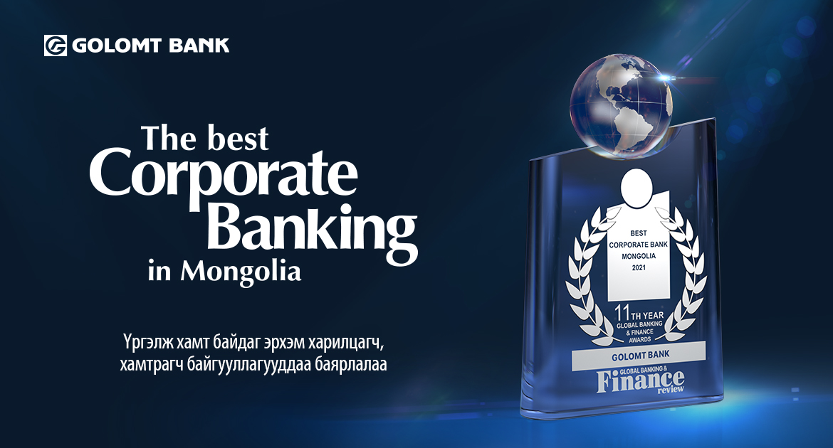 Олон улсын банк санхүүгийн салбарт нэр хүндтэй сэтгүүл болох “Global Banking & Finance Review”-ээс Голомт банкийг “Best Corporate Bank in Mongolia – 2021” буюу Монгол Улсын шилдэг байгууллагын банкаар өргөмжиллөө. Уг шагналыг дэлхийн санхүүгийн нийгэмлэгийн хүрээнд нэвтрүүлсэн шинэ үйлчилгээ, амжилт, стратеги, дэвшилтэт технологи зэрэг олон шалгуурыг үндэслэн олгодог бөгөөд Голомт банк эдгээрийг бүрэн хангажээ.